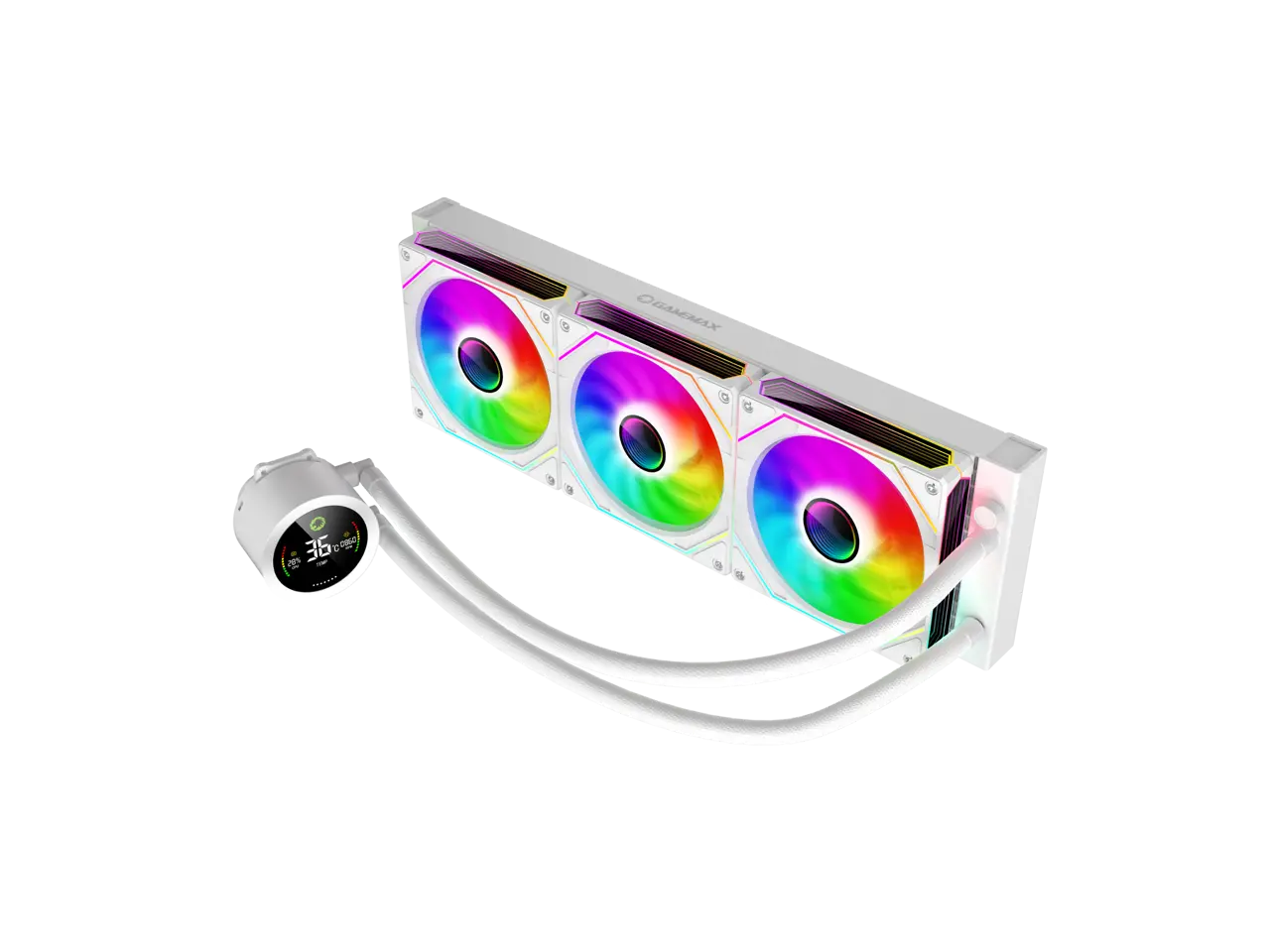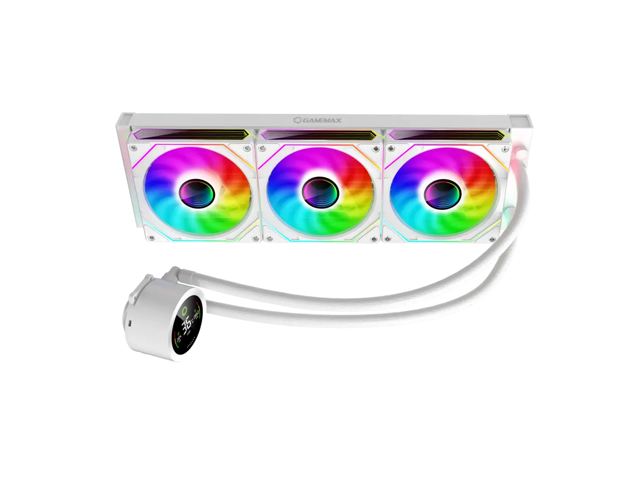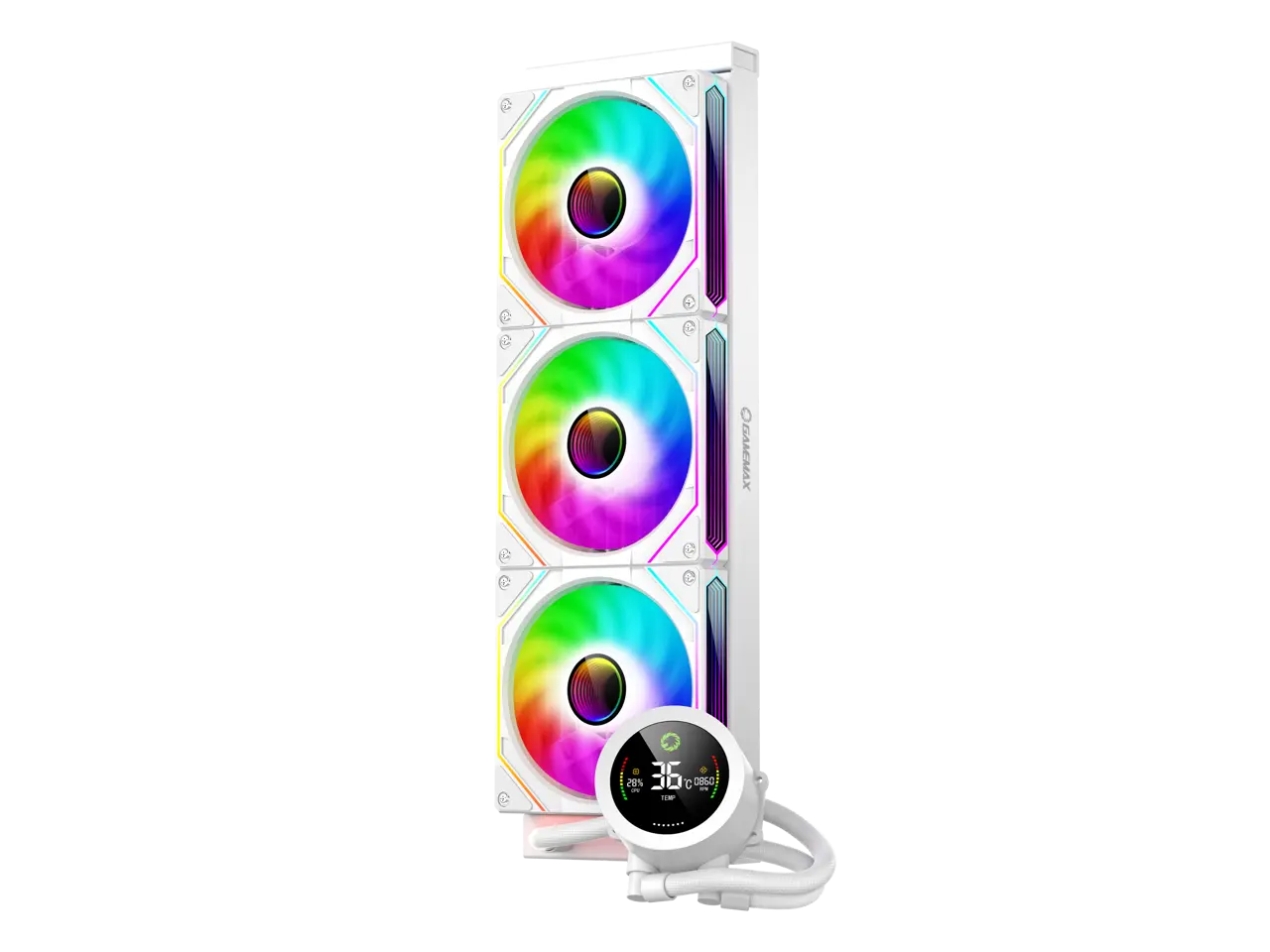 5. GAMEMAX 360 Digital WH, Liquid CPU Cooler 360mm Addressable ARGB Pump Fans 290W TDP AIO Water Cooler