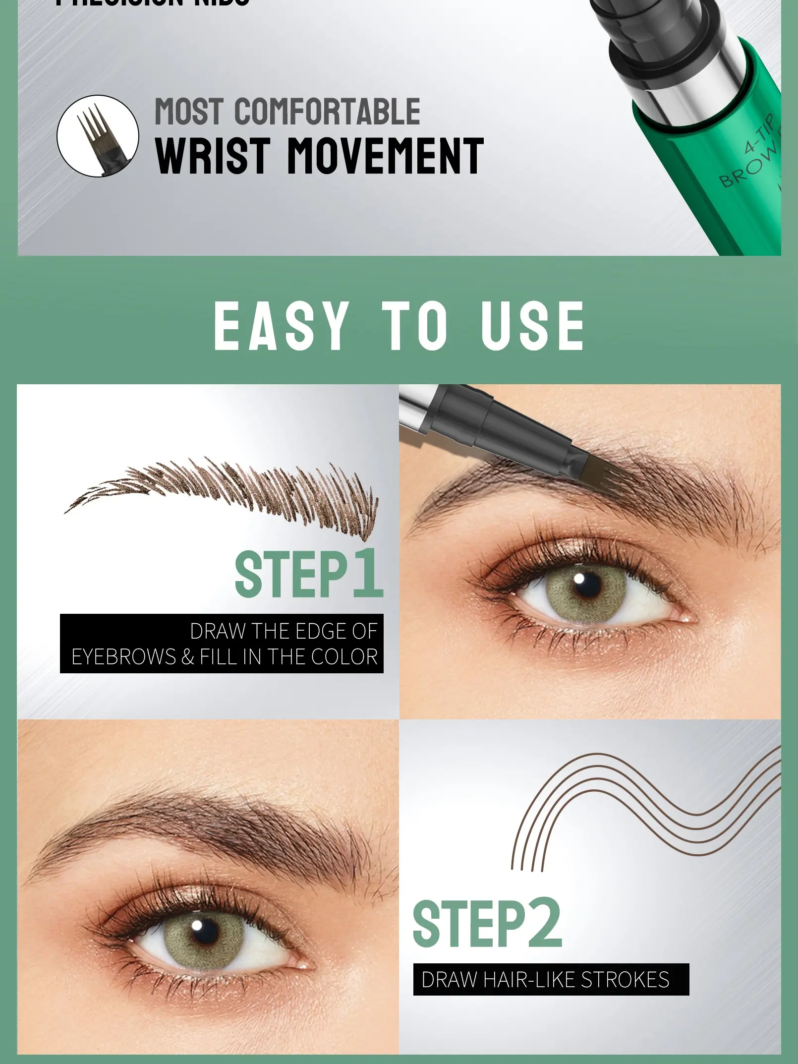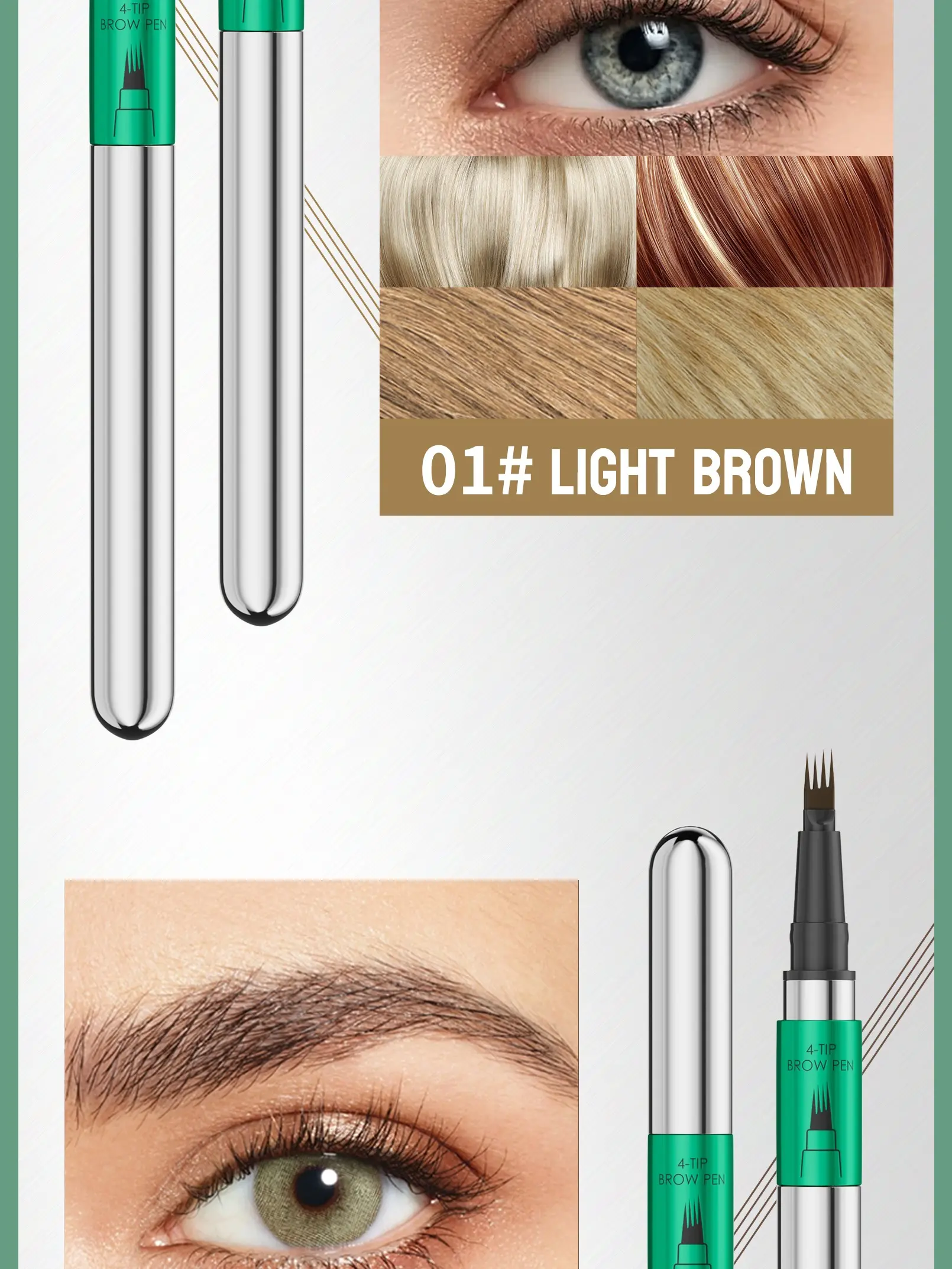 4-Tip Eyebrow Pencil, Quickly Creates Natural Eyebrows, Fills And Shapes In One Stroke, Waterproof And Sweat-Proof For Long-Lasting Wear, Creating A Natural, Full, And Three-Dimensional Look. Perfect For Busy Professionals And Makeup Enthusiasts.