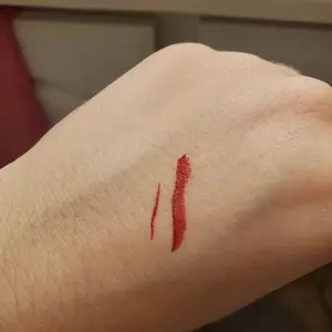 The liquid has no strong pigment. The applicator is not great for me. I doubt the product on my eyelids will last the hour. this is a test swatch I tried mins ago. It didnt move but already transferred