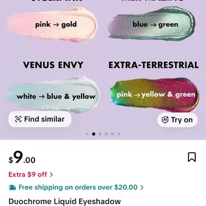 Mesmer-eyes at every angle with this duochrome eyeshadow—now available in a new shade, Extra-terrestrial! It's packed with reflective pigments to create bold, metallic eye looks that shift and dazzle in the light. Formulated for long-lasting and comfortable wear, the liquid eyeshadow delivers high-pigment colours in a gel base. Swipe across your lids to serve the intense, multi-chrome effect you've seen all over your FYP.