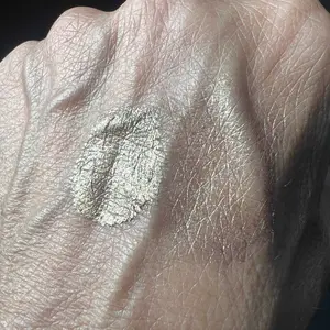 I got this in the shade "Olive", and it is a lovely and slightly unique neutral sort of color, which can either be worn in a heavier and more metallic layer or sheared out to a pretty glimmering layer. It has finer sparkle rather than chunky glitters,