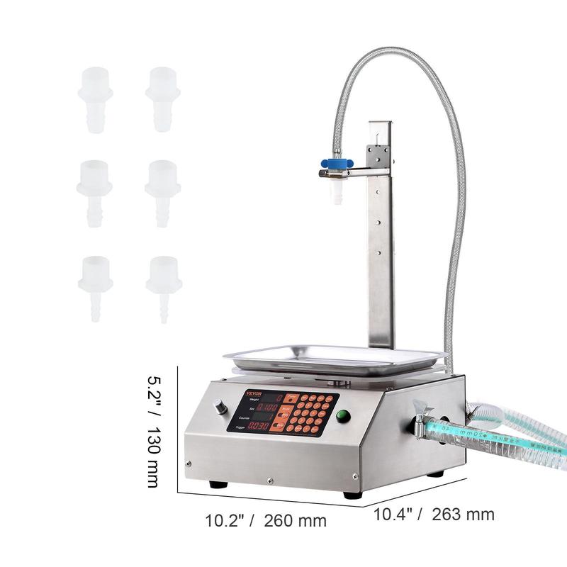 • Smart and Precise Quantification: Our liquid filling machine features digital control. No more complex menus or settings! Just input your desired quantity, and it takes care of the rest. An intelligent weighing system kicks in automatically when you place your bottle. It deducts the tare weight and stops filling once it hits your set quantity.