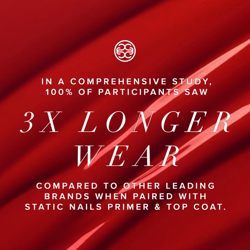 Static Nails Liquid Glass Lacquer is a breakthrough, non-toxic formula loaded with rich pigments and natural antioxidants for a healthier manicure that actually lasts up to 10+ days without chipping when paired with Static Nails Liquid Glass Primer and Top Coat.