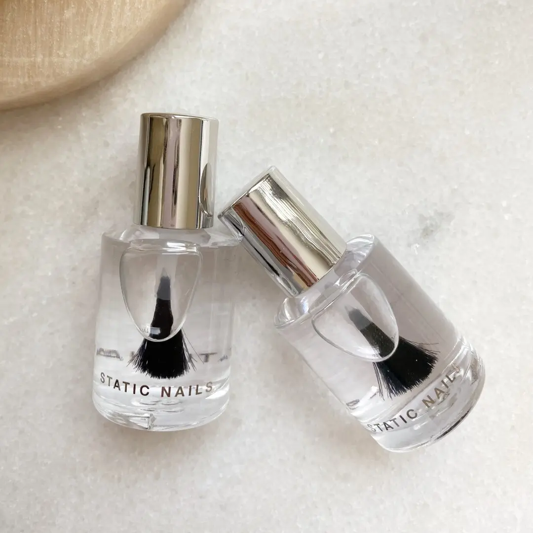 Static Nails Liquid Glass Primer is a breakthrough formula that smoothes the nail's surface, fills ridges, and increases color adhesion for your most beautiful manicure yet! Lacquers last up to 10+ days without chipping when paired with Static Nails Liquid Glass Primer and Top Coat.