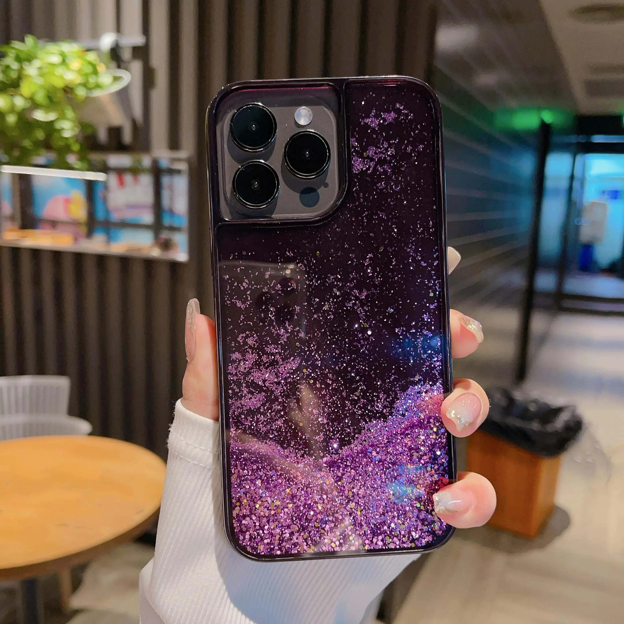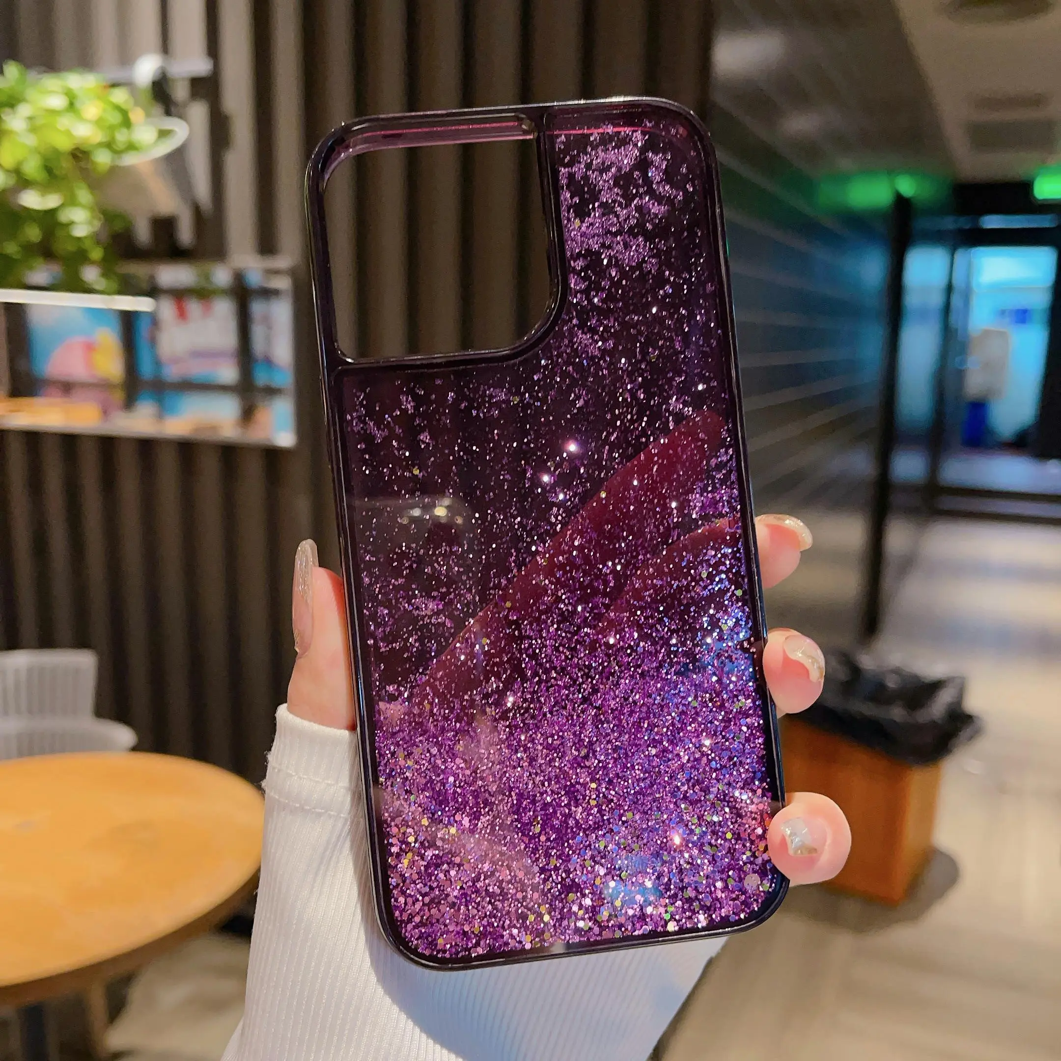 This Ins-style Western liquid glitter case is perfect for iPhone 12/13/14/15/16 Pro Max. It features a clear design with flowing purple glitter, making it a trendy choice. Stay on top of the latest fashion with this viral design. It's not just protection; it's a statement piece.