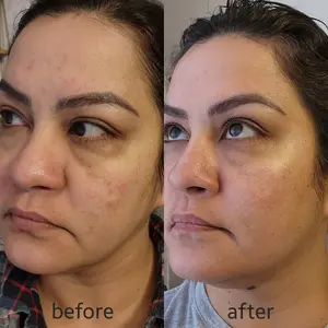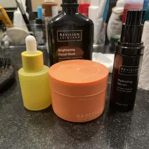 The best Vitamin C there is! I’ve tried many, such as Drunk Elephant and both Skinceuticals CE Ferulic and Phloretin, and all they did was cause me to breakout. For reference, my skin is combo-dry - oily T-zone and dry cheeks. I’ve never dealt with big breakouts/acne until COVID era in 2020. I work in the hospital where mask use was necessary, and that really irritated my skin. I couldn’t find anything to help treat the hyperpigmentation, uneven skin tone, and rough texture left behind from the acne scars until I discovered this absolute gem! My face is so much more brighter, skin tone is more even, and I don’t notice much redness anymore. Photos below show how bad my breakouts were, followed by the hyperpigmentation, and my face recently with just falsies. Thank you Barefaced!! I also purchased the toning pads and tinted sunscreen and they’re definitely a must too!