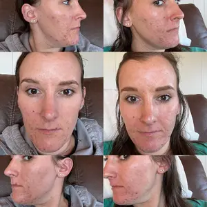 3 weeks of use and a huge difference in my complexion already! I use toning pads & 4 drops of liquid gold 1x a day. Pictures are in the same exact spot in my bathroom. Only difference was picture 1 was a sunny day & most recent was overcast.