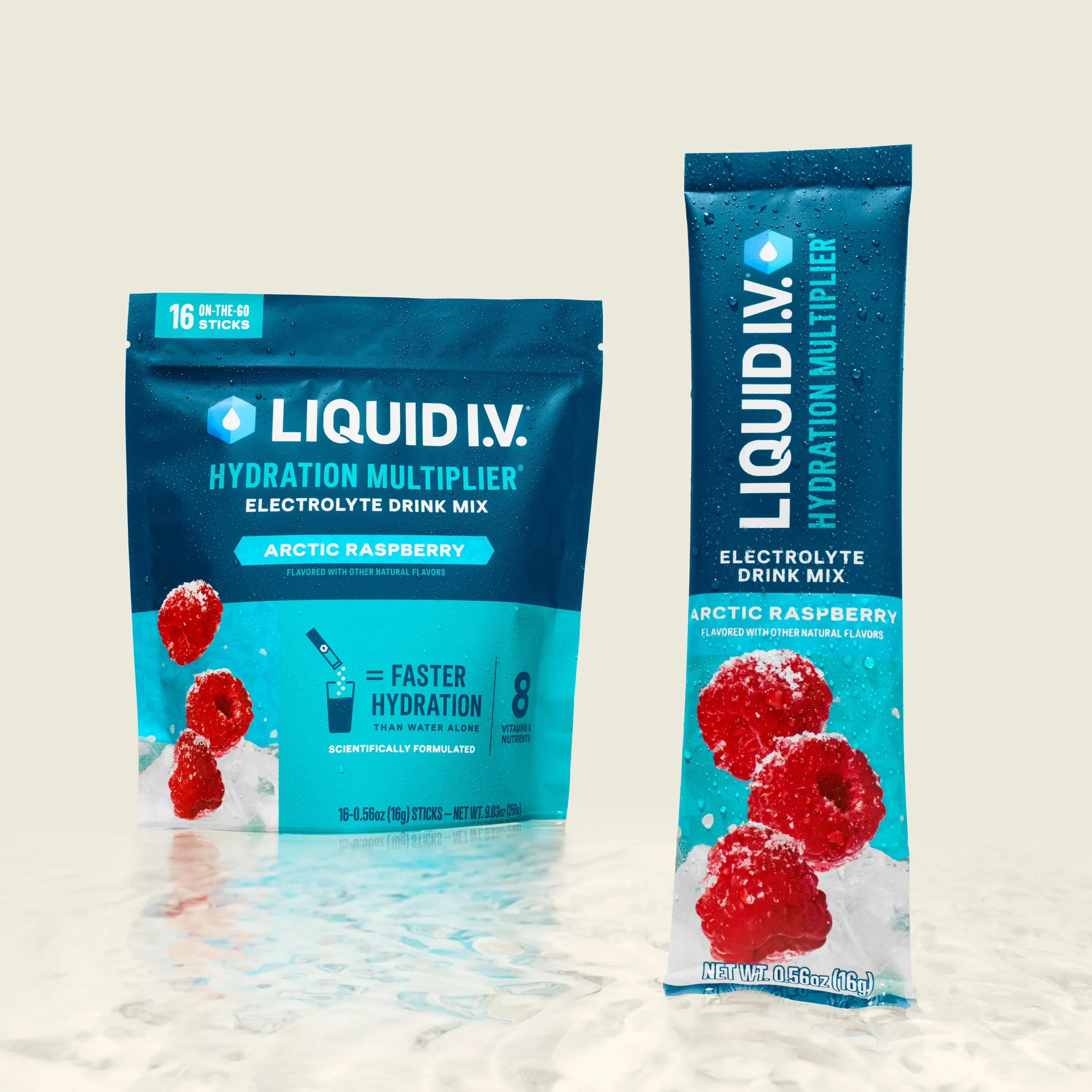Experience faster hydration than water alone. Arctic Raspberry provides sweet and sour raspberry notes with an icy finish in a spirulina infused blue. It's 3x the electrolytes of the leading sports drink and made for refreshing, on-the-go hydration.