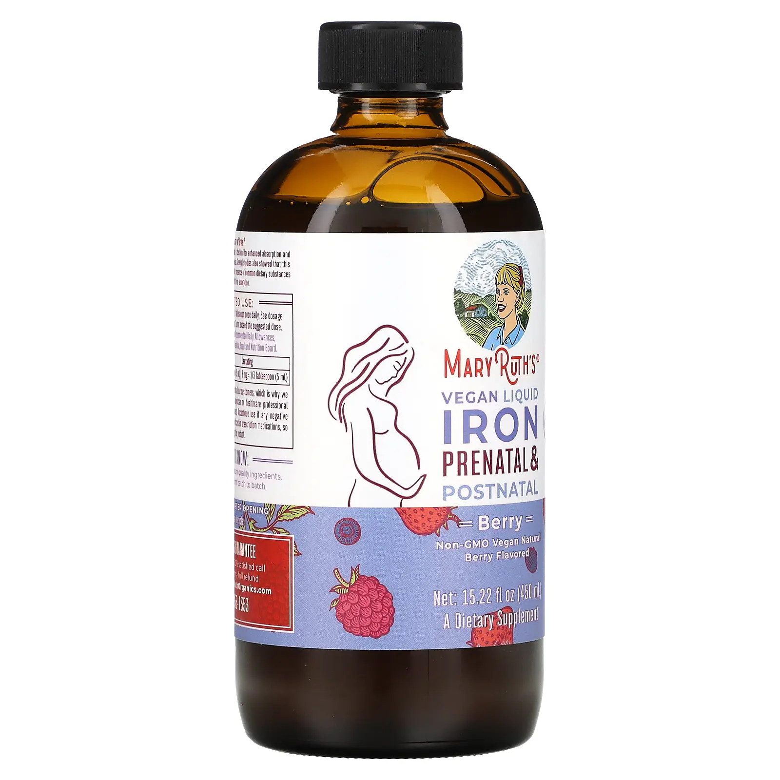 MaryRuth's Vegan Liquid Iron Prenatal & Postnatal, Berry, 15.22 fl oz (450 ml)