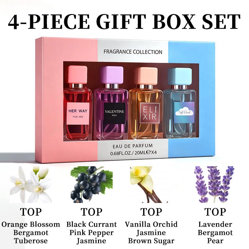5. 4-Piece Set, Women's Eau De Parfuma Spray Gift Box, Long Lasting Fragrance, 4 Different Flavor, Perfect For Holiday Gifts, Dating, Daily Life, Parties, 0.68 fl oz/bottle