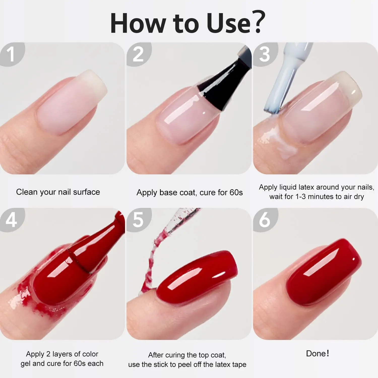 Air Dry: Apply liquid latex to the cuticles and wait for 60 seconds to air dry until it becomes clear