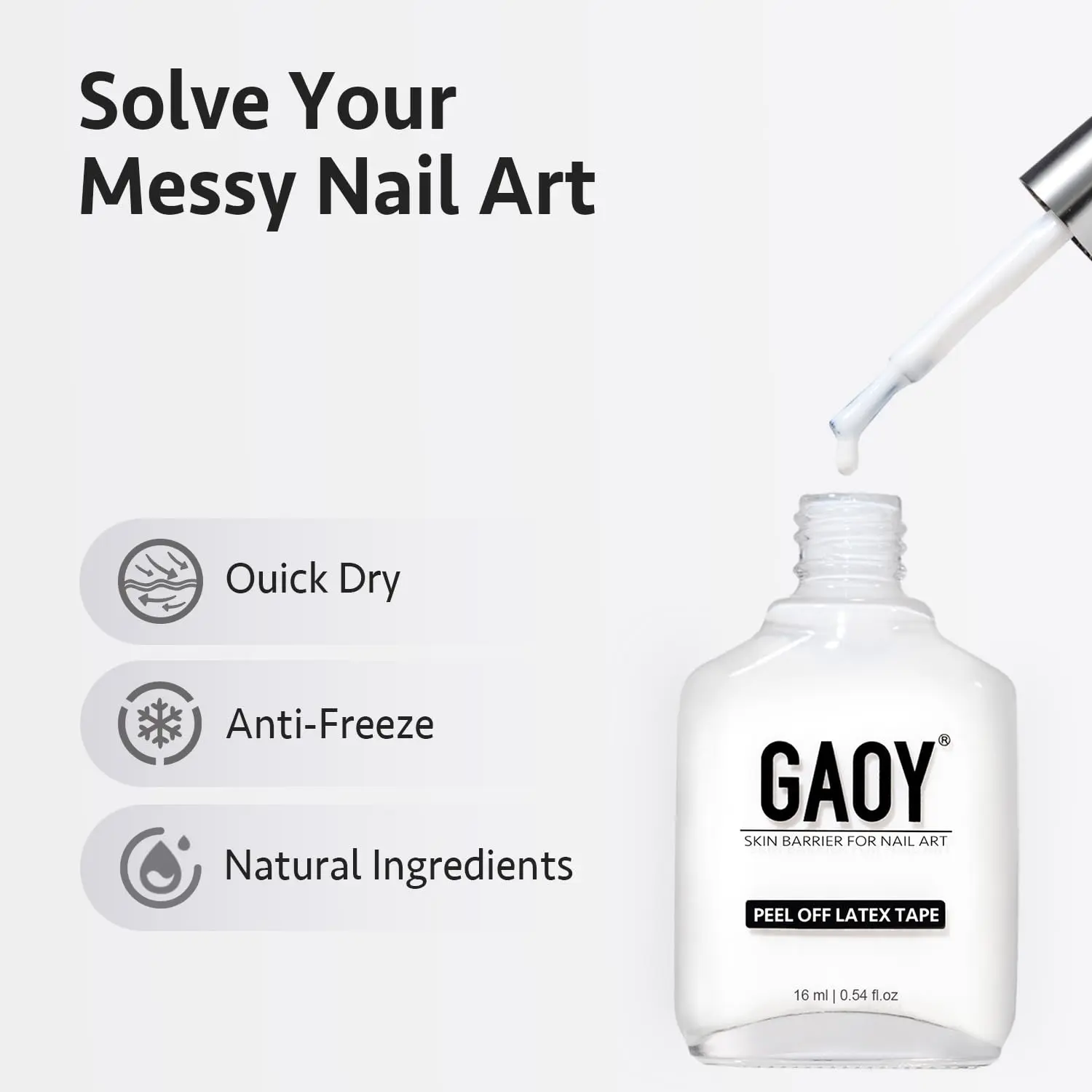 Bigger Volume: 1 GAOY peel off latex tape of 0.54 fl.oz (16ml). Gel manicure essentials to enjoy the nail art from the comfort of your own home