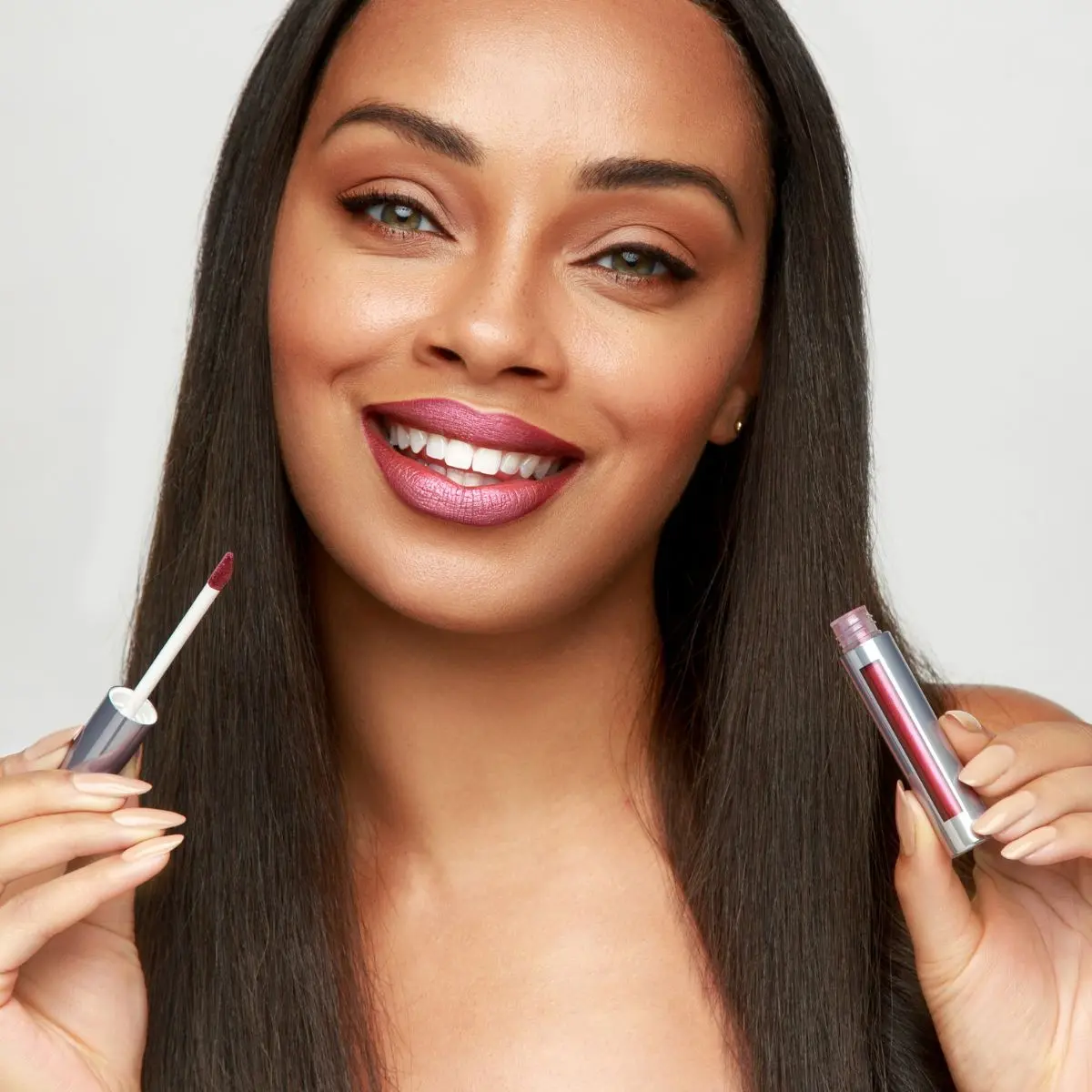 You were meant to stand out in this bold, berry liquid lipstick! Combined with silver and gold shimmer, this liquid lipstick provides full coverage and a luxurious lip that will last all day.