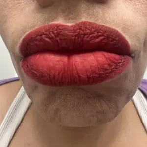 Highly pigmented, much more purple I real life than any photo or video I saw on tik tok. Did dry my lips, but then I added lip oil and my lips didn’t feel like the desert any more. Great pigment but the drying effect means I probably won’t use it much. (My lips are swollen from jaw surg)
