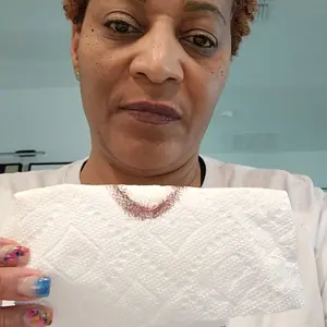 Received my items today and immediately at to give them a try. It goes on smoothly and isn't sticky. Time to see how it holds up to eating/drinking. 5* unless it doesn't stay on.