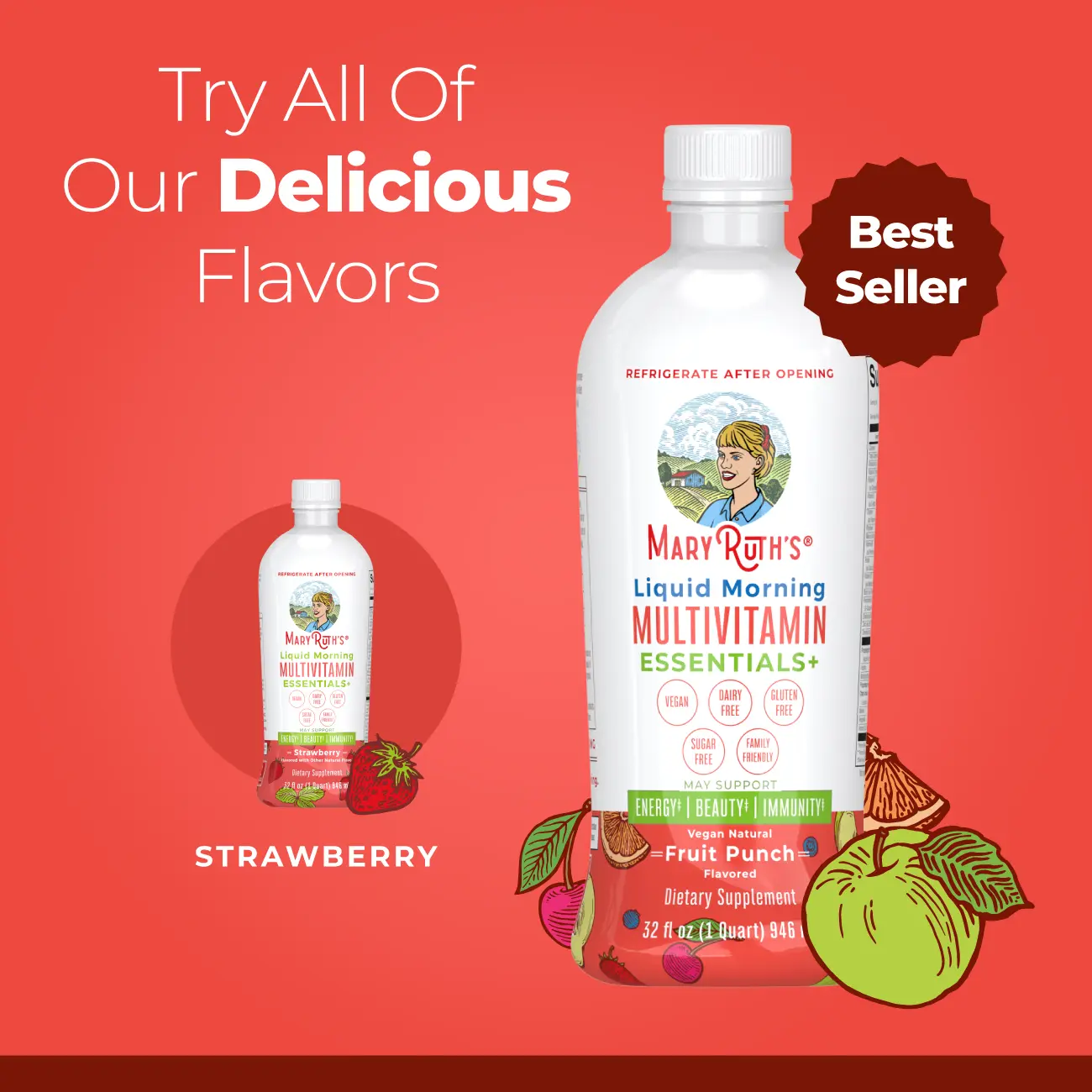 Liquid Daily Multivitamin: A different take on our original Mary Ruth Liquid Morning Multivitamin formula in two delicious flavors! This liquid multivitamin is available in Fruit Punch or Strawberry.
