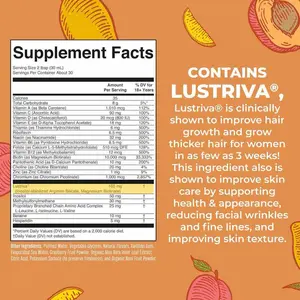 Increase Hair Thickness & Reduce Fine Lines: Lustriva, included in this formula, is clinically shown in women to help grow thicker, fuller hair in as early as 3 weeks with continued usage at 1 serving per day. This bottle provides 15 servings. This ingredient is also shown to improve facial wrinkles, fine lines, and smoothness for women.