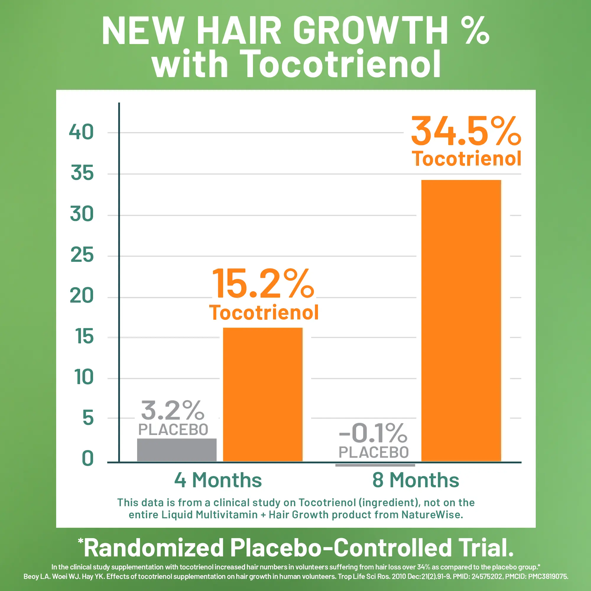 ·WITH TOCOGAIA FOR HEALTHY HAIR GROWTH: This Liquid Multivitamin Hair Growth is formulated with TocoGaia, a natural full spectrum vitamin E from palm fruit to support hair density in men and women.*