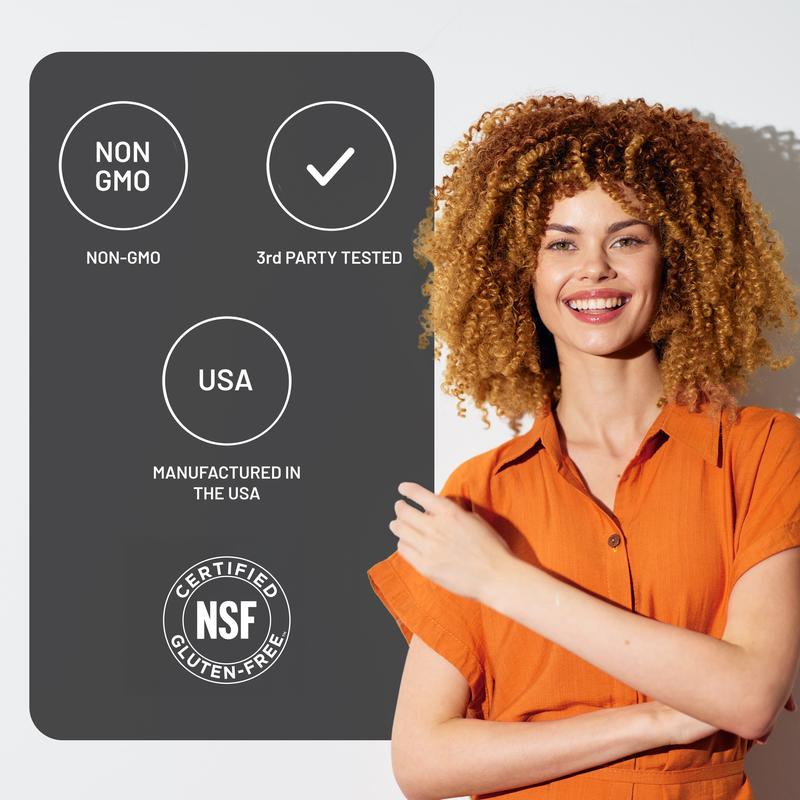 This Liquid Multivitamin + Hair Growth is also formulated with an amino acid complex for keratin and collagen synthesis,* 10,000 mcg of biotin for strong hair and nails,* and methylated B vitamins for better absorption.*