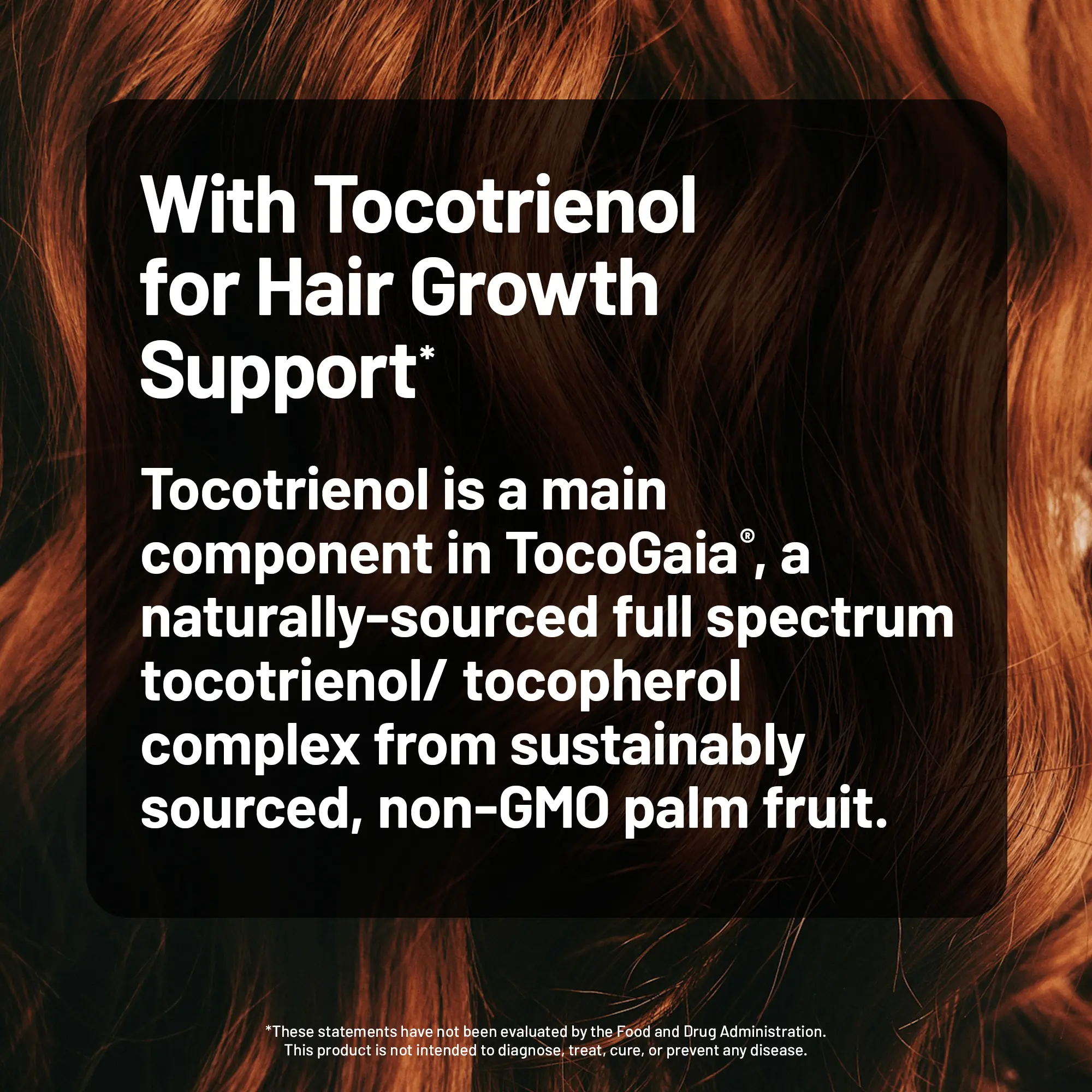 This special multivitamin features clinically studied TocoGaia, a natural full spectrum vitamin E from palm fruit to support hair density in men and women, as well as skin firmness, elasticity & collagen synthesis.*