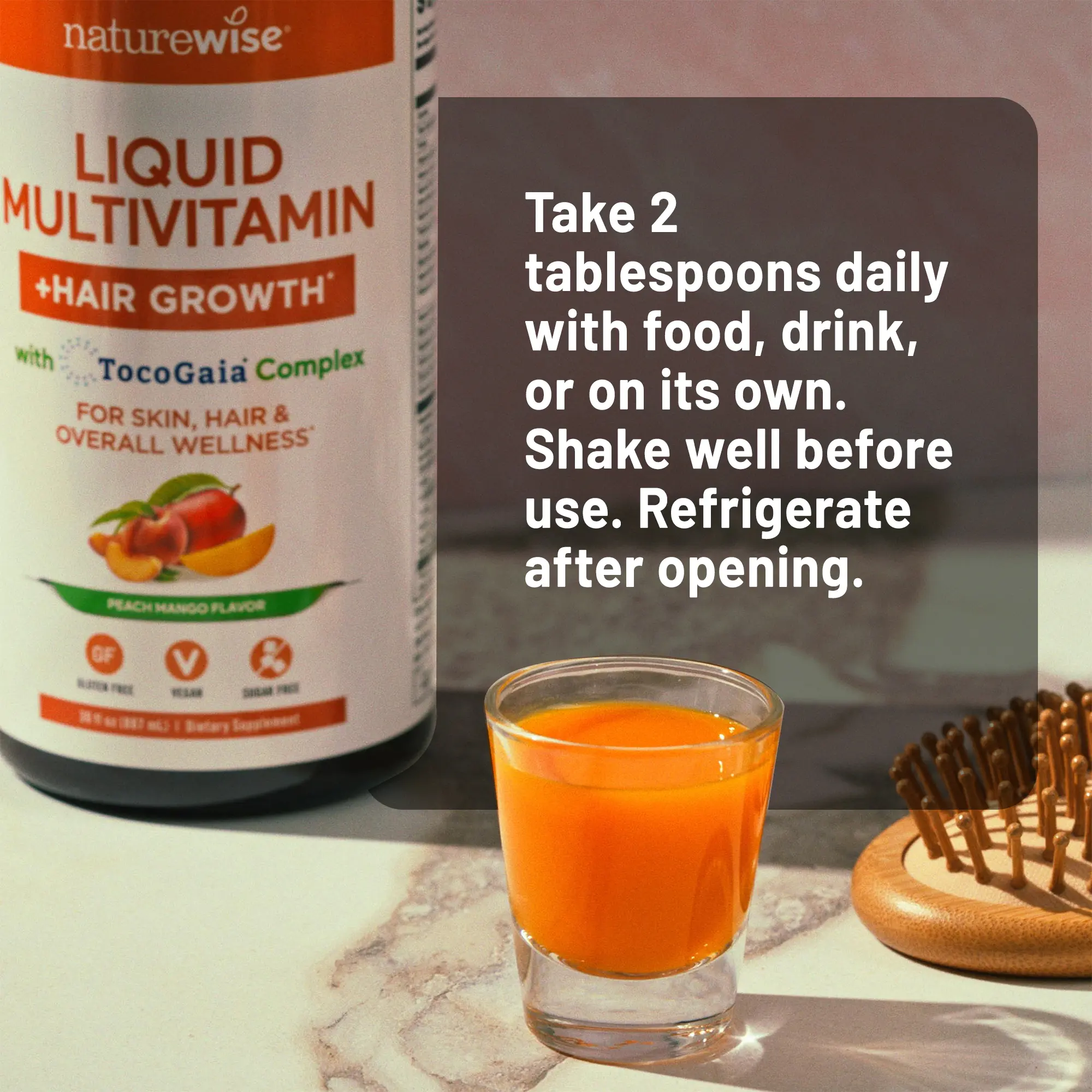 NatureWise Liquid Multivitamin + Hair Growth is a delicious, easy-to-take formula for women and men, supporting hair health, immune function, and energy.*
