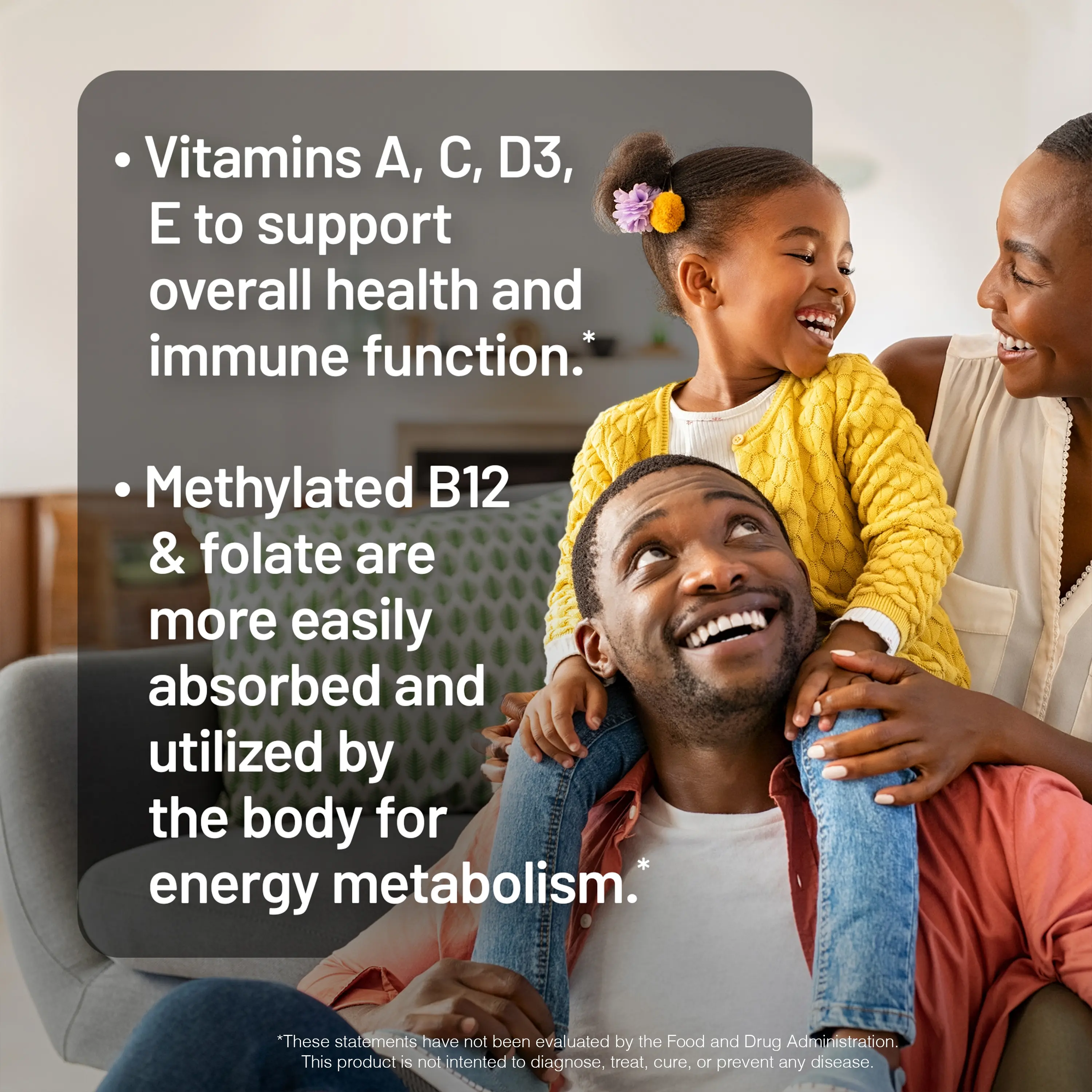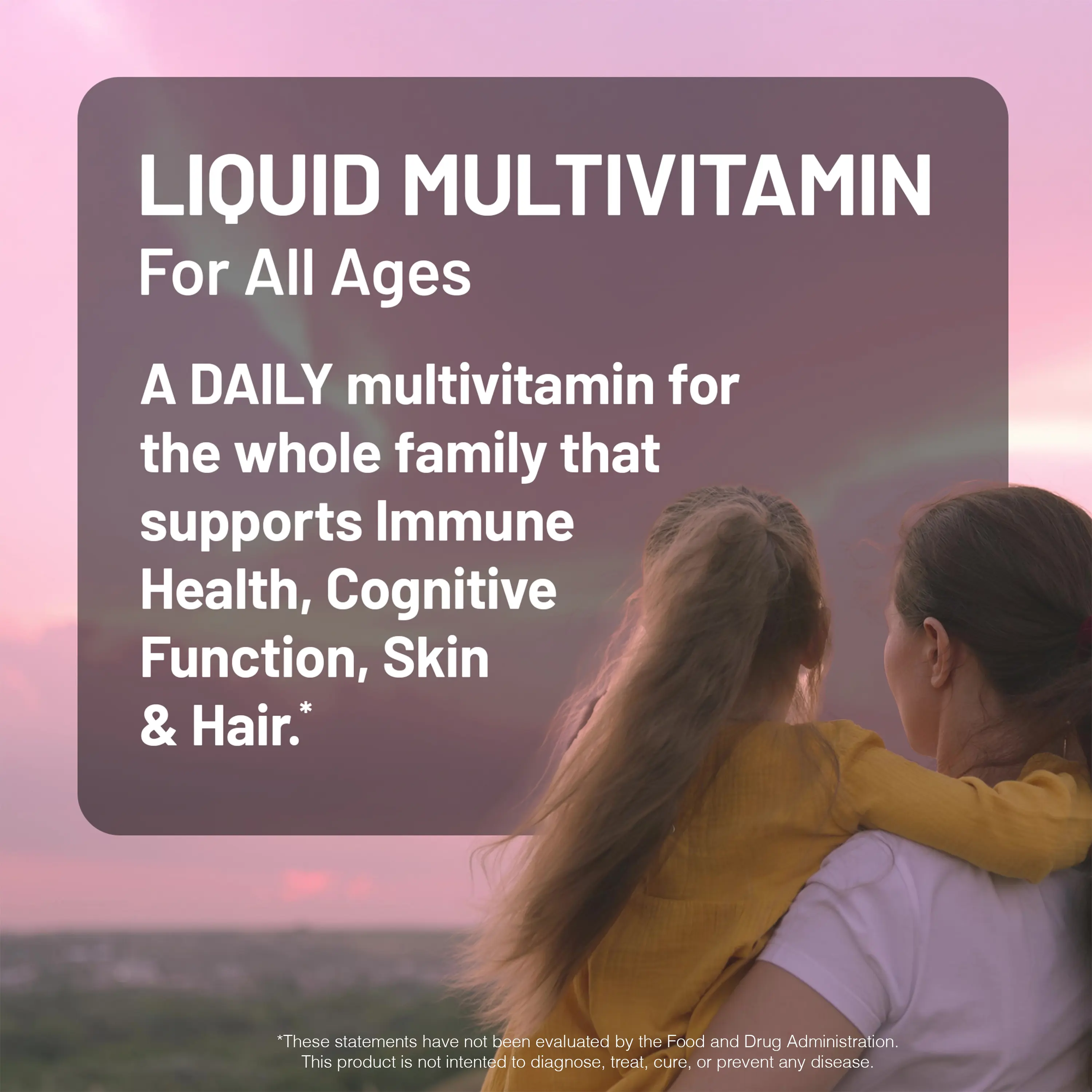 Crafted for the whole family, our Liquid Multivitamin supports immune health, mental clarity, and radiant hair and skin—all in a liquid formula that’s easy to take every day.* Our multi contains vitamin C, vitamin D3, and vitamin E to support immune function and overall well-being.
