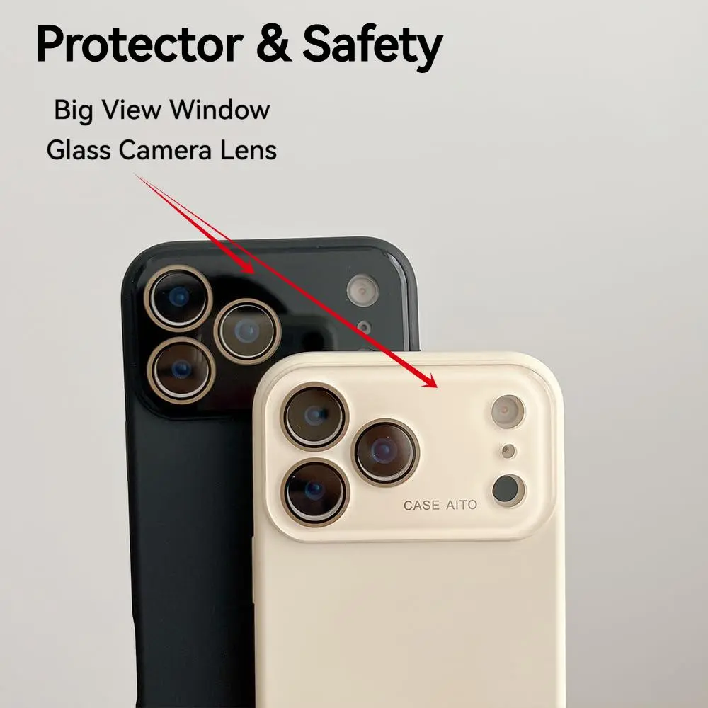 Liquid-Soft Phone Case for iphone 17 16 15 14 13 12 11 pro max plus with Large Window & Built-in Acrylic Lens Cover - Full Camera Protection TPU Case for man woman