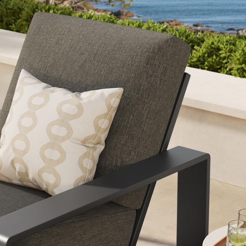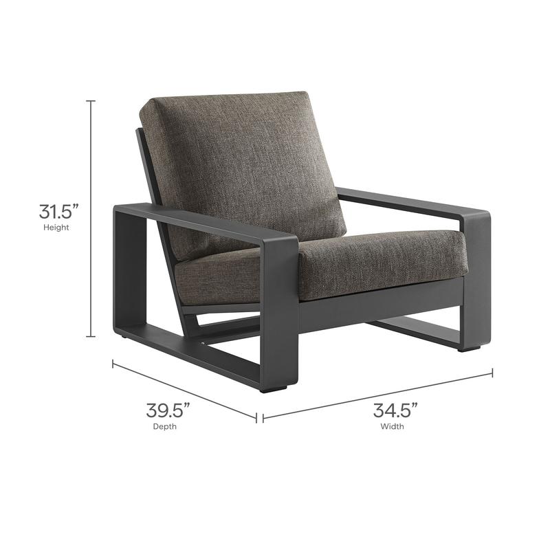 Unwind in sculptural sophistication with the Lirienne Outdoor Patio Armchair. Designed for modern relaxation, this statement-making outdoor chair showcases a sleek, rectangular frame crafted from durable powder-coated aluminum, offering both resilience and style. The deep, angled seat and plush foam cushions invite you to sink into lasting comfort, while the smooth, weather-resistant upholstery is stain-resistant and easy to maintain with removable, washable covers. The Lirienne Outdoor Club Chair is as practical as it is stylish, making it the perfect outdoor retreat for leisurely lounging. Whether placed on a sun-drenched deck or a shaded patio, this aluminum oversized patio chair brings an air of refined ease to any alfresco setting. Weight Capacity: 300lbs.