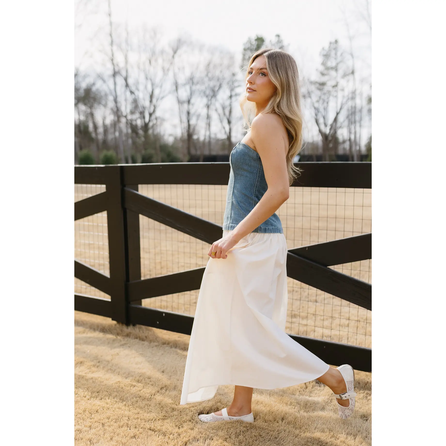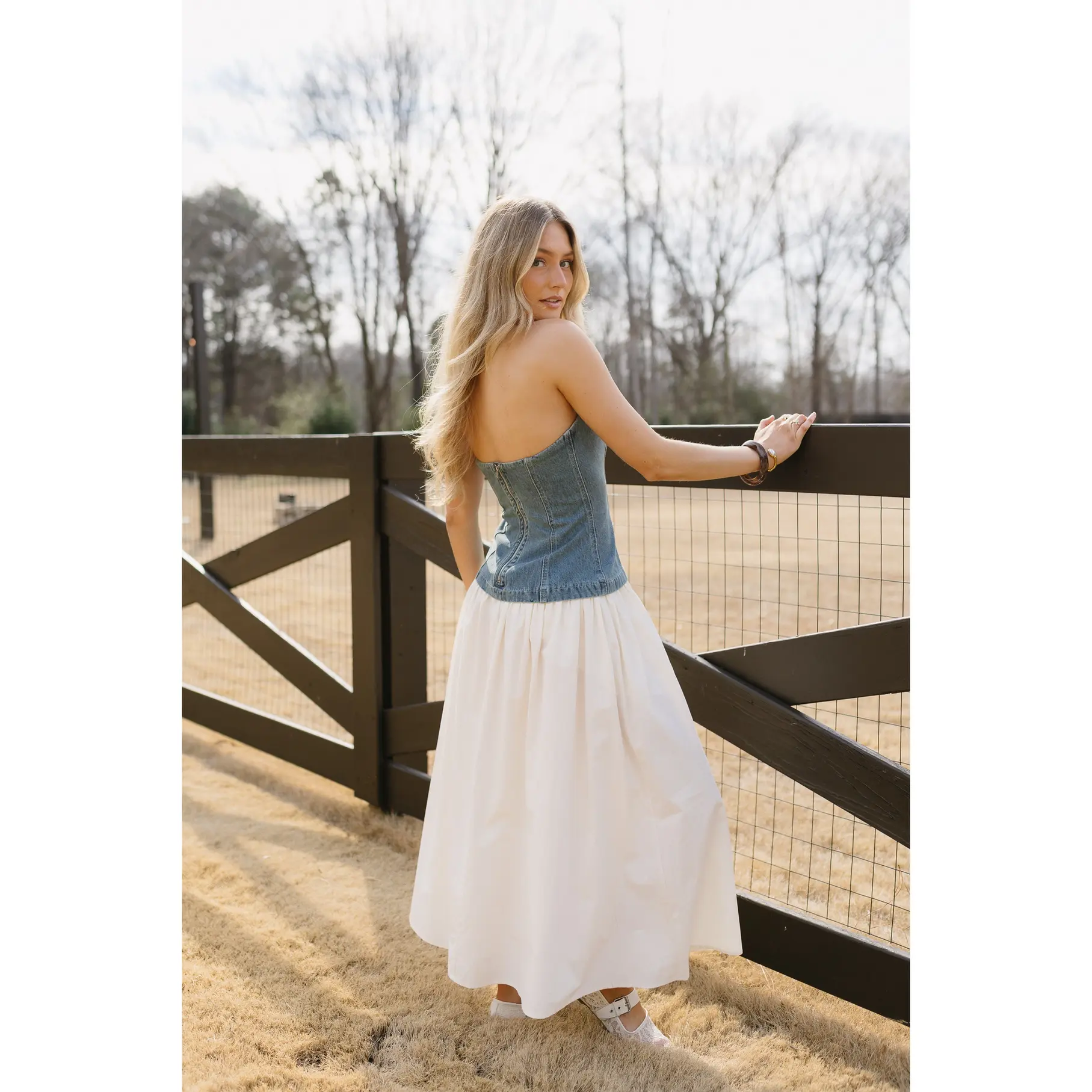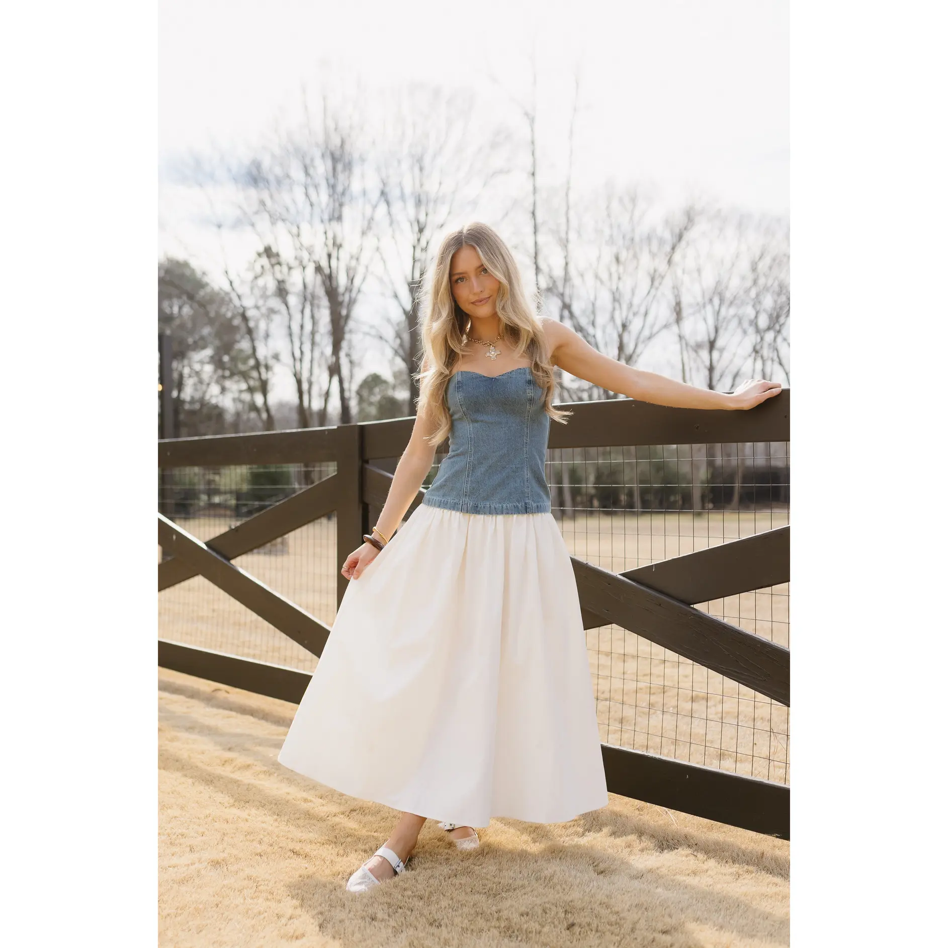 ·Denim and cotton poplin dress