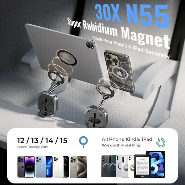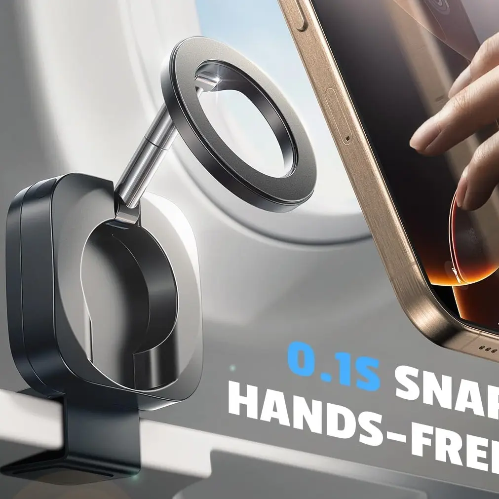 ·For MagSafe Anywhere Phone Holder: The LISEN for MagSafe Airplane Phone Holder quickly secures your phone in 0.1 seconds, eliminating the hassle of traditional iphone holder clamp adjustments. Designed for stability, This travel gadgets ensures your phone stays in place during flights.