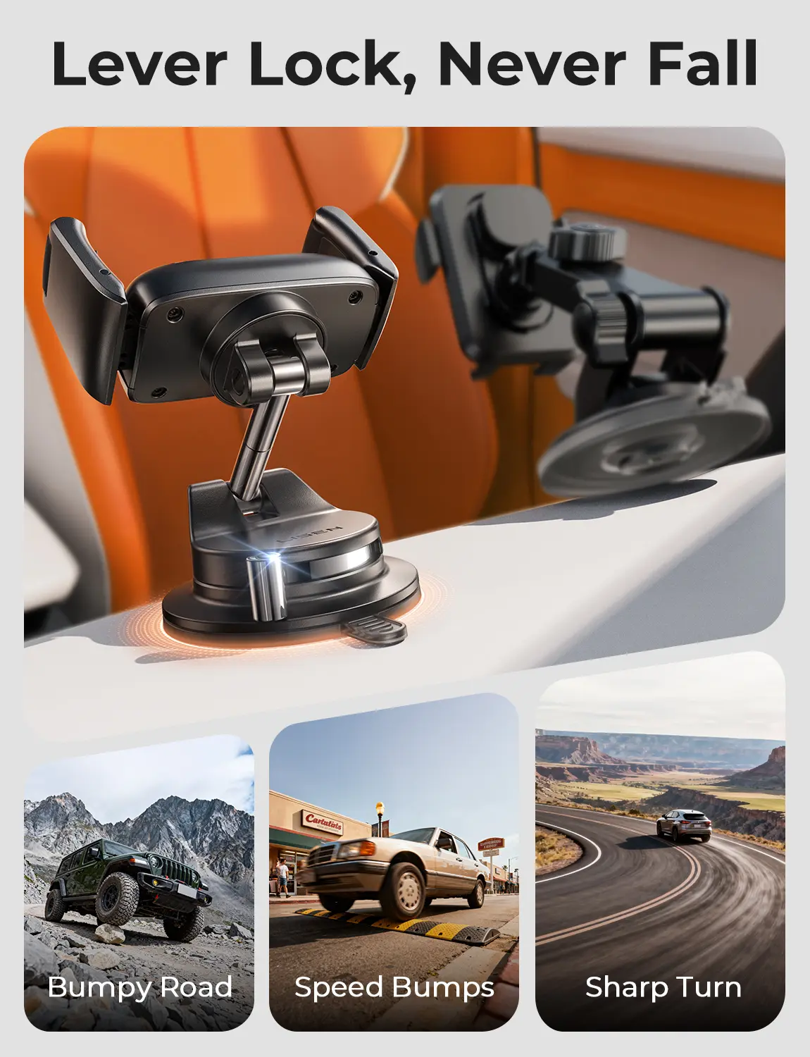 ·Upgraded Vacuum Base: Sticks securely anywhere.