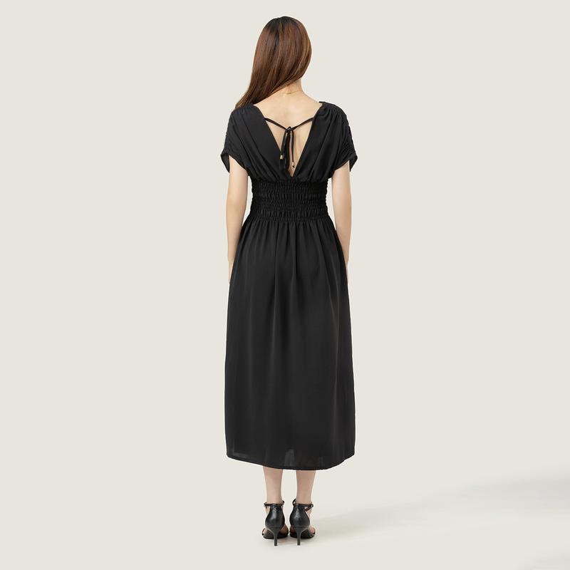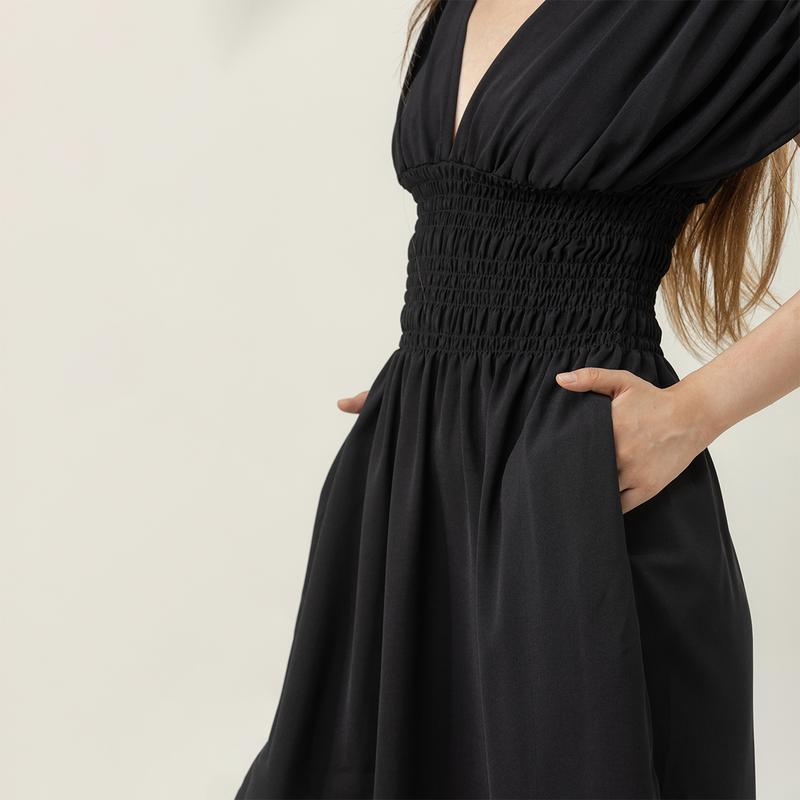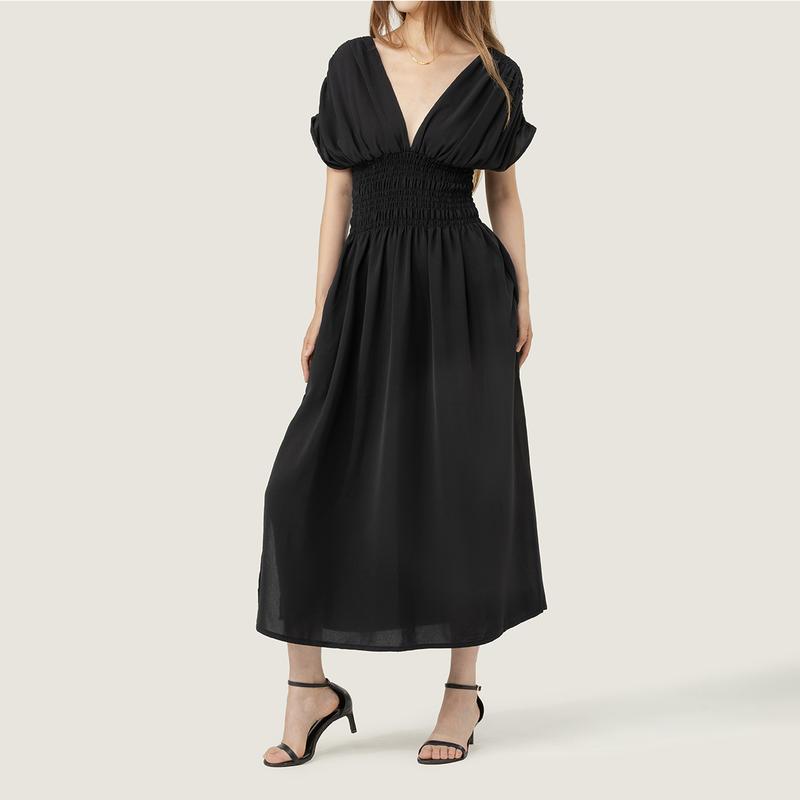 MIDIROSS Comfy V-Neck Maxi Dress in Elegant Black for Daily Wear, Vacations & Weddings - Chic Polyester Casual Dress with Shortsleeve FitMIDIROSS Comfy V-Neck Maxi Dress in Elegant Black for Daily Wear, Vacations & Weddings - Chic Polyester Casual Dress with Shortsleeve Fit