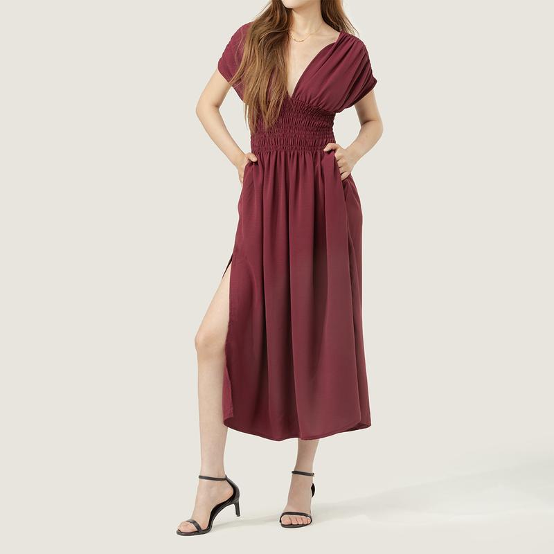 #MIDIROSS Comfy V-Neck Maxi Dress - Perfect for Daily Wear, Vacations and Weddings@Midiross