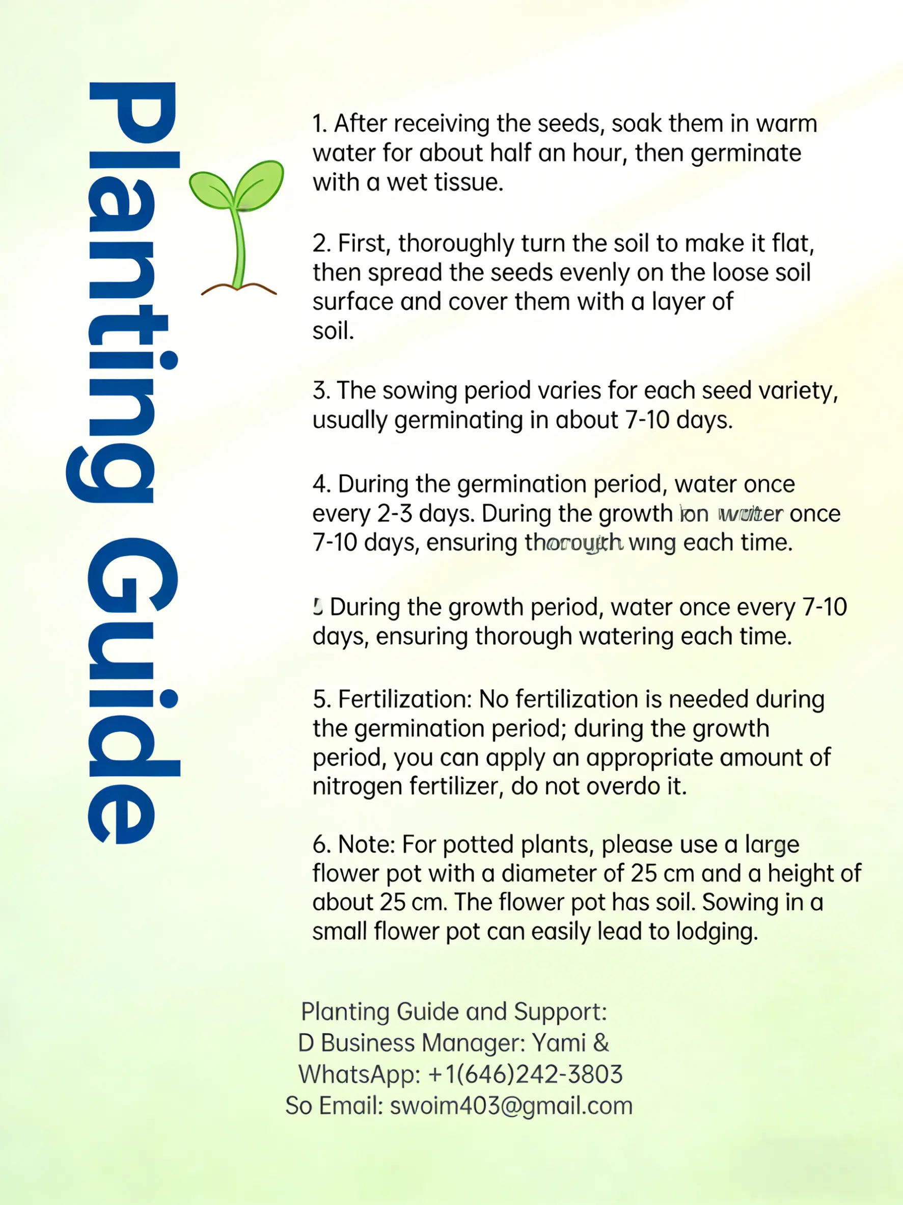 Basic planting guidance to support germination and early growth.