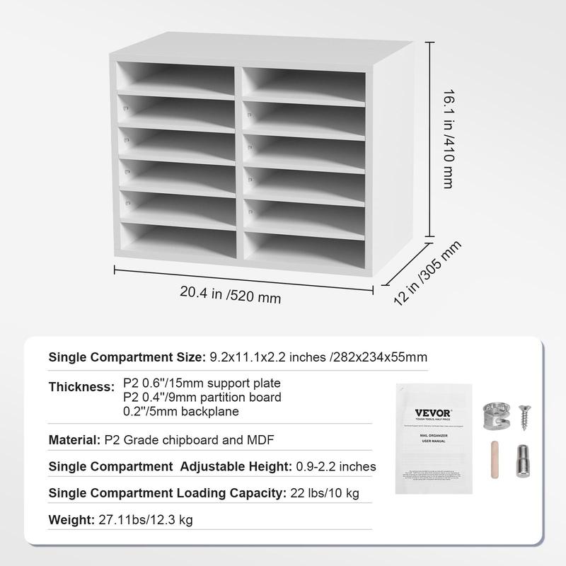 • Maximize Your Space: Say goodbye to cluttered desktops with VEVOR 20.4''x12''x16.1'' wood literature organizer. It has 12 compartments in total, arranged in 6 rows and 2 columns. You'll have ample space to store and organize books, documents, magazines, papers, and other materials. Keep your workspace neat and tidy with ease.