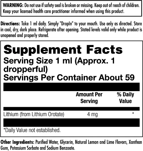 Relax. Just one dropperful (1 ml) of our fast-acting Lithium Orotate DropIns may help support a calmer mood and a healthy balance.