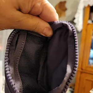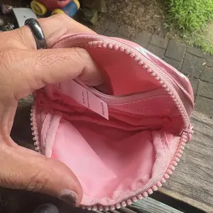 I love this little bag! I put lipstick, hand sanitizer, chap stick and cream.