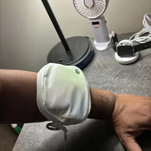 This is very handy to throw on your cup or wear on your wrist. Found it to be kinda snug in the arm. But it comes with a key ring on it to attach keys or phone. Love it!