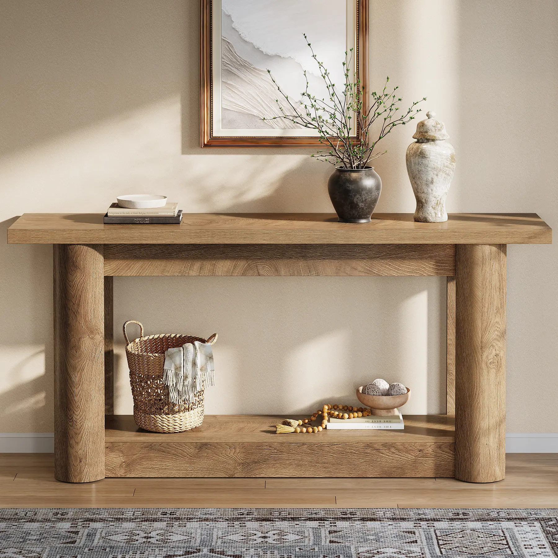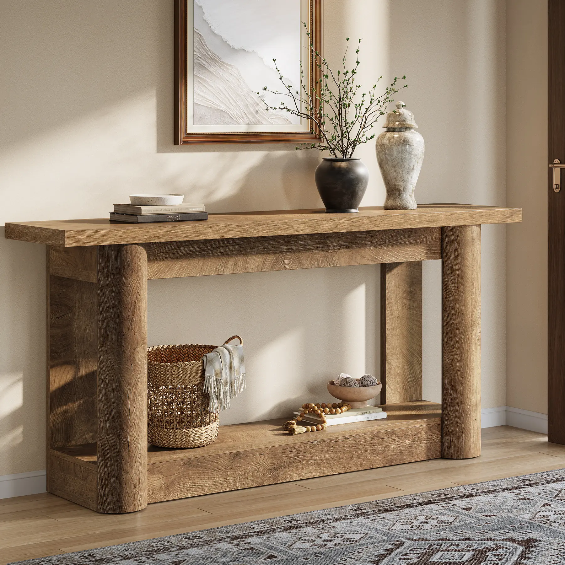 ·𝐀𝐦𝐩𝐥𝐞 𝐒𝐭𝐨𝐫𝐚𝐠𝐞 𝐒𝐩𝐚𝐜𝐞: Measuring 62.99" long, this console table offers generous space for your favorite decorative items. The lower shelf is perfect for larger decor or storage boxes, keeping your entryway organized while showcasing your personal style