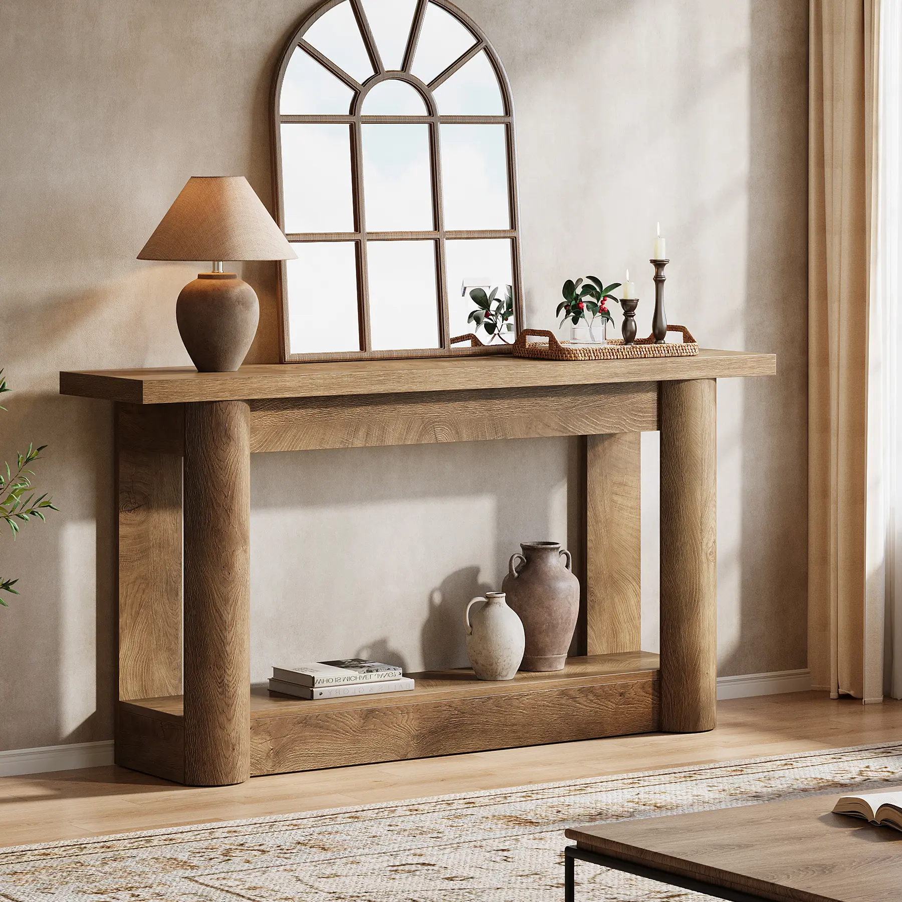 ·𝐂𝐡𝐚𝐫𝐦𝐢𝐧𝐠 𝐑𝐮𝐬𝐭𝐢𝐜 𝐅𝐚𝐫𝐦𝐡𝐨𝐮𝐬𝐞 𝐒𝐭𝐲𝐥𝐞: Embrace the essence of country living with our entryway table! The vintage brown wood grain and elegantly curved legs create a stunning focal point, radiating timeless charm that enhances any hallway or foyer decor
