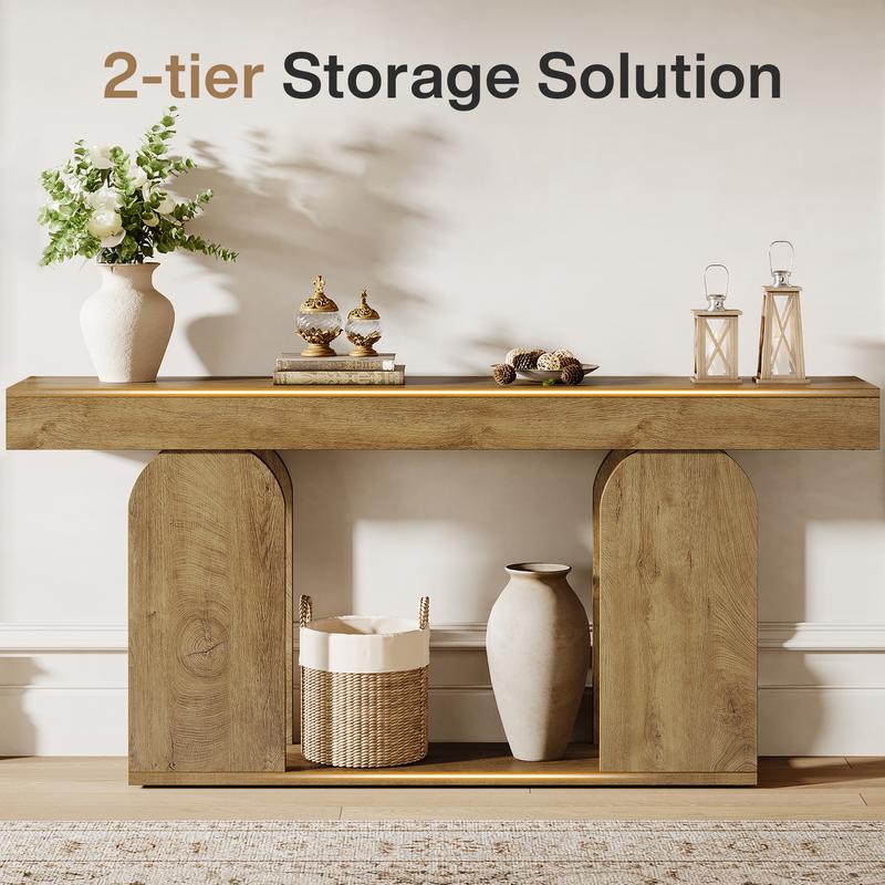 ·Multi-Purpose 2-Tier Storage: This wood grain console table features open top and bottom shelves that maximize storage space, making it perfect for storing baskets, books, or decorations, effortlessly blending style and functionality