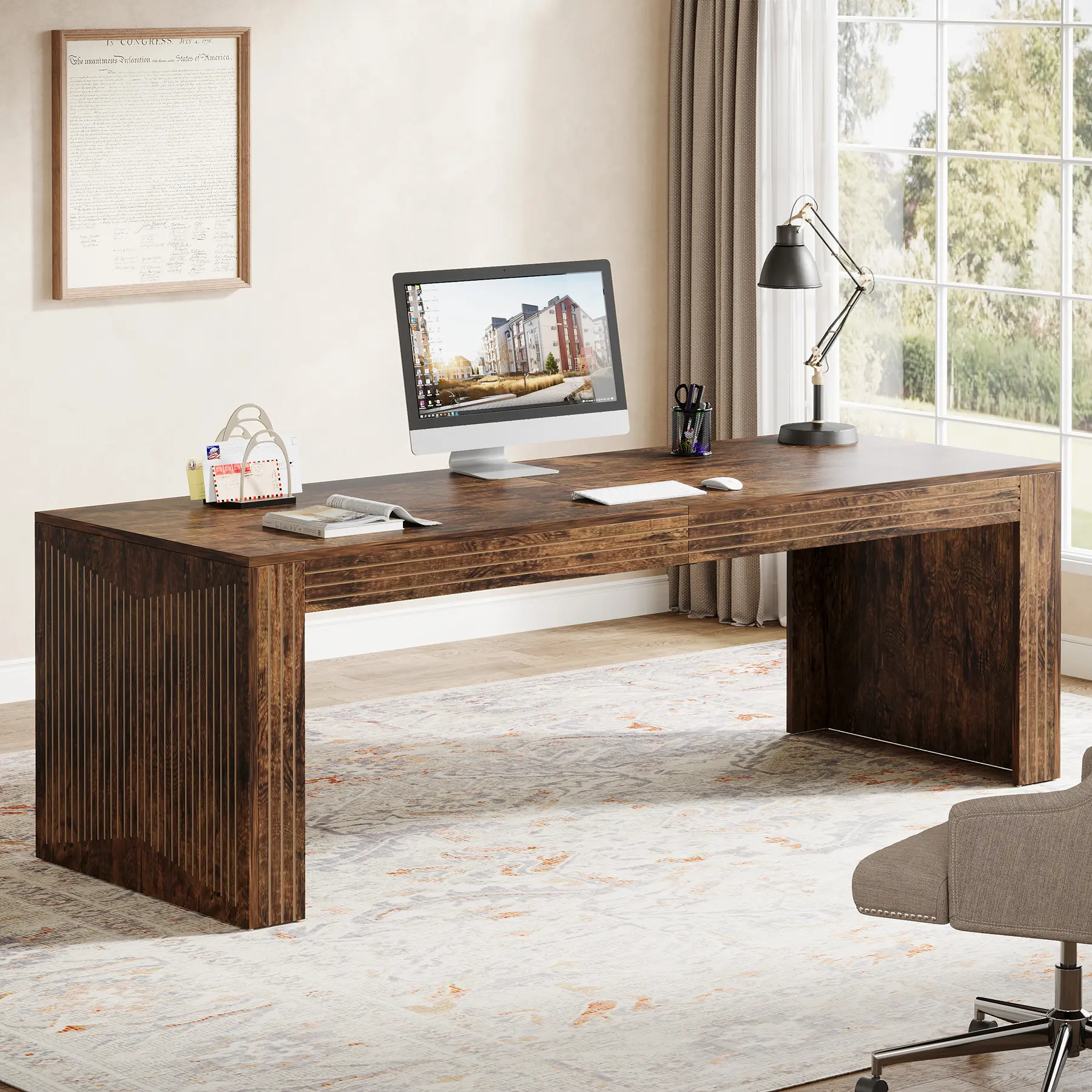 ·EASY ASSEMBLY: Coming with labeled parts and illustrated instructions, this large computer desk can be easily assembled. Its dimensions are 78.74" L x 27.6" W x 29.53" H. We prioritize providing friendly customer service. If you have any inquiries, you can feasibly count on us for a satisfactory response.