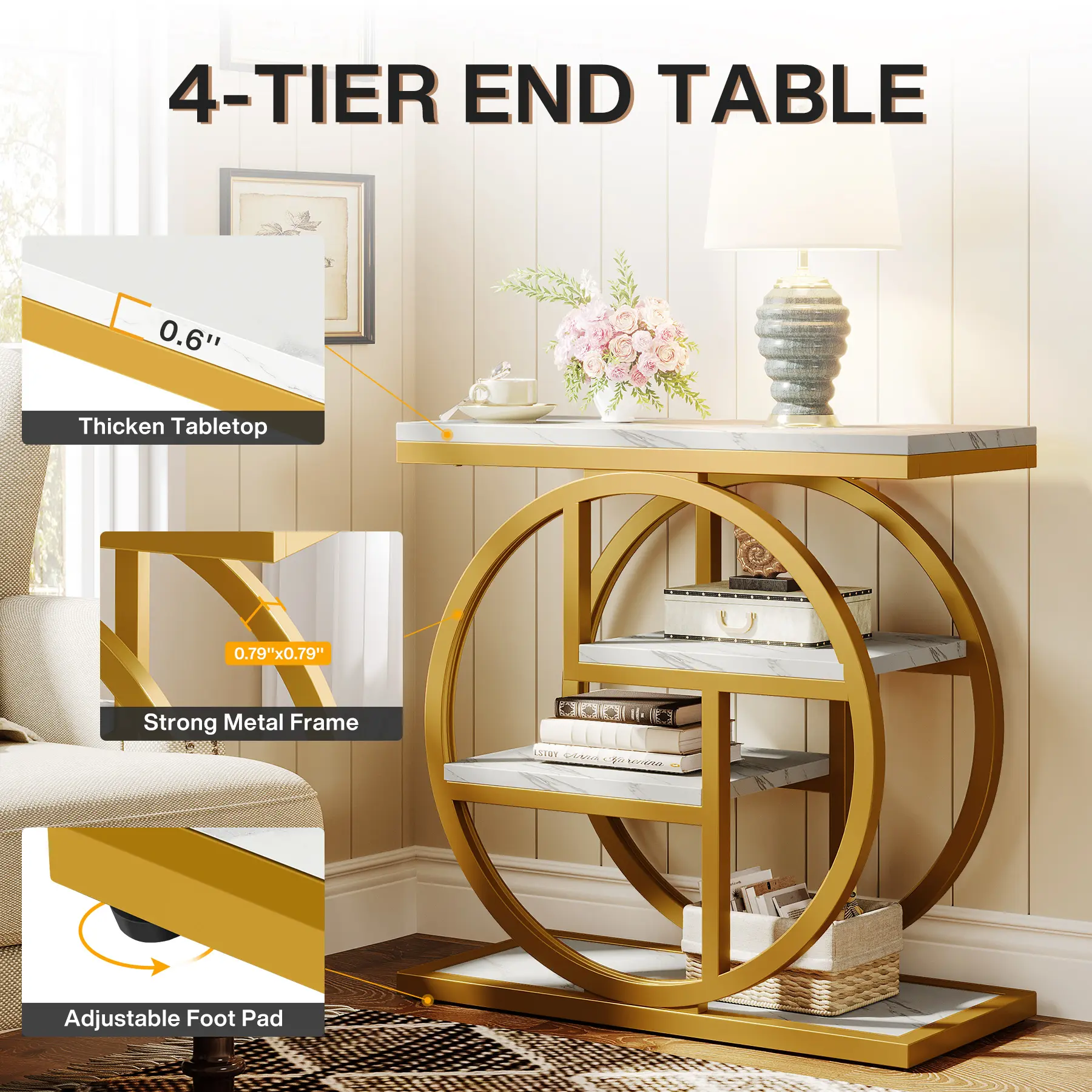 ·【Solid Construction】: Fashioned from 0.59" reinforced MDF coupled with a heavy-duty metal frame, this 4-tier end table with shelves ensures superior durability and stability, having the capacity to bear up to 44 lb. This living room end table is also equipped with 4 adjustable foot pads, boosting its stability even on uneven surfaces and preventing any potential floor scratches.