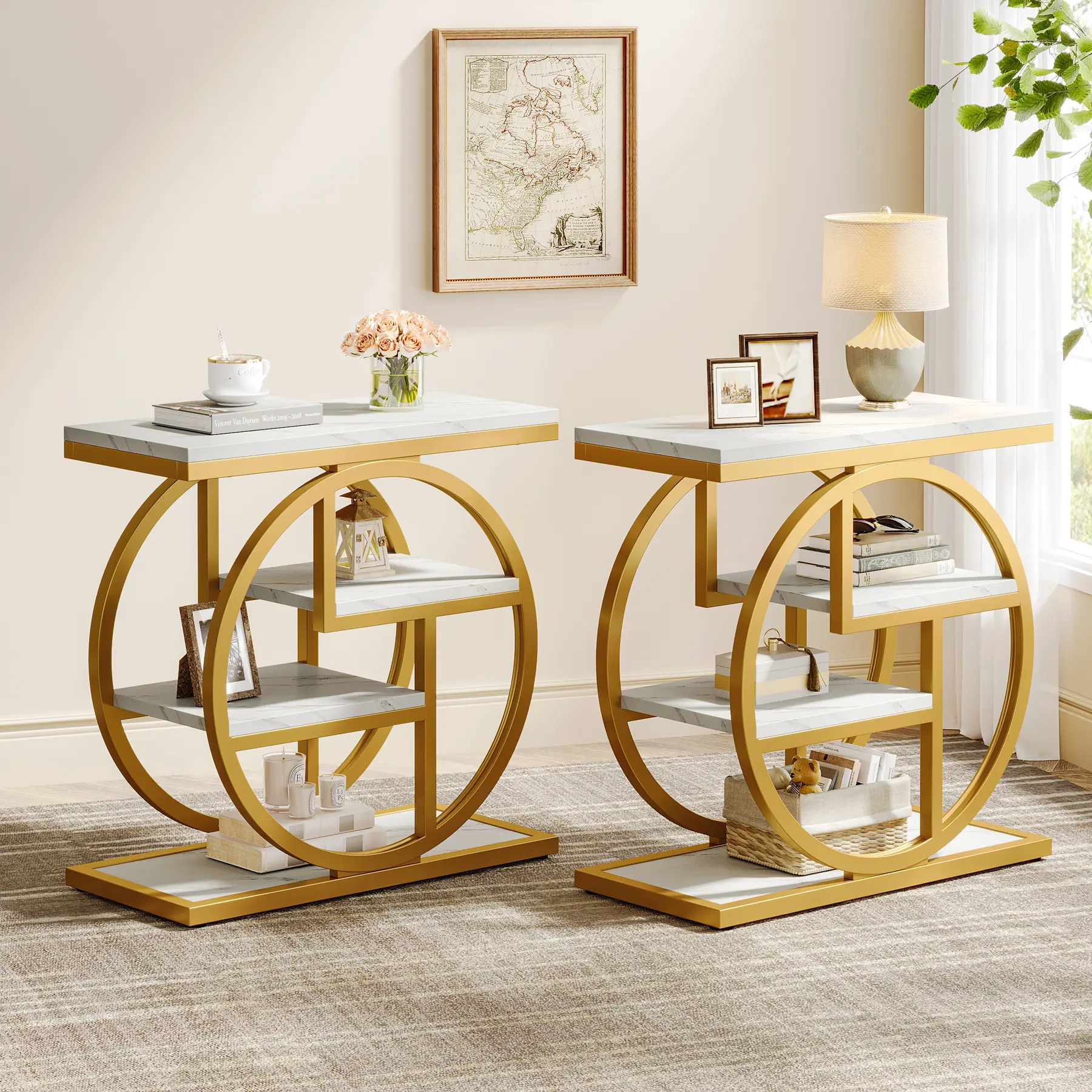 ·【Spacious 4-Tier Shelving】: This faux marble side table is designed with 4 expansive shelves, which provide abundant storage for all your essentials like books, lamps, plants, remotes and other small items. With this versatile piece, maintain an organized and clutter-free decor in your living room or bedroom.
