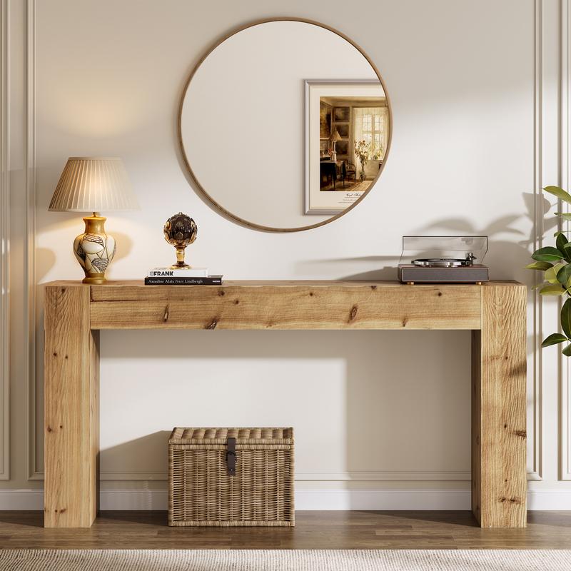 ·Natural Rustic Aesthetics: Hand-crafted from premium fir wood, each wood entryway table flaunts one-of-a-kind grain patterns. Its rustic allure brings a touch of nature indoors, seamlessly meshing with diverse home decor themes