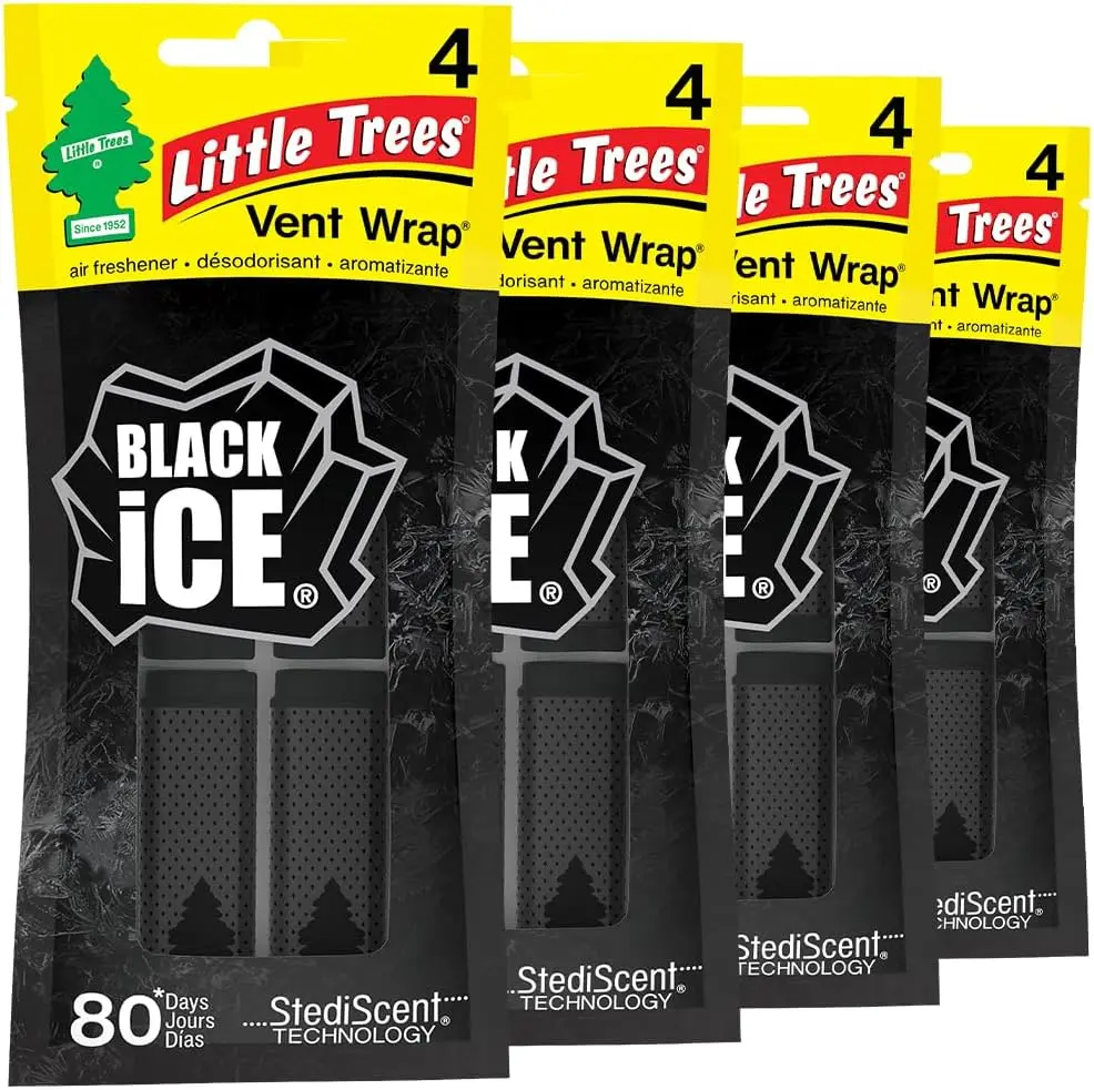 LITTLE TREES Car Air Freshener | Vent Wrap Provides Long Lasting Scent, Invisibly Fresh | 16 Air Fresheners | Black Ice