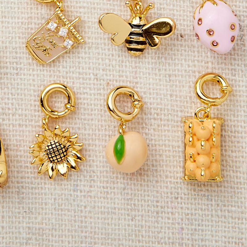 Keep it peachy with this limited-edition Peach Charm. Tiny CHARMS, Major Versatility All of our charms are meant not only for our bracelets, but for existing necklaces, earrings, shoe laces, hair ties, bag charms, and whatever else you want to give a charm-makeover. Add, move, and remove them as you please!