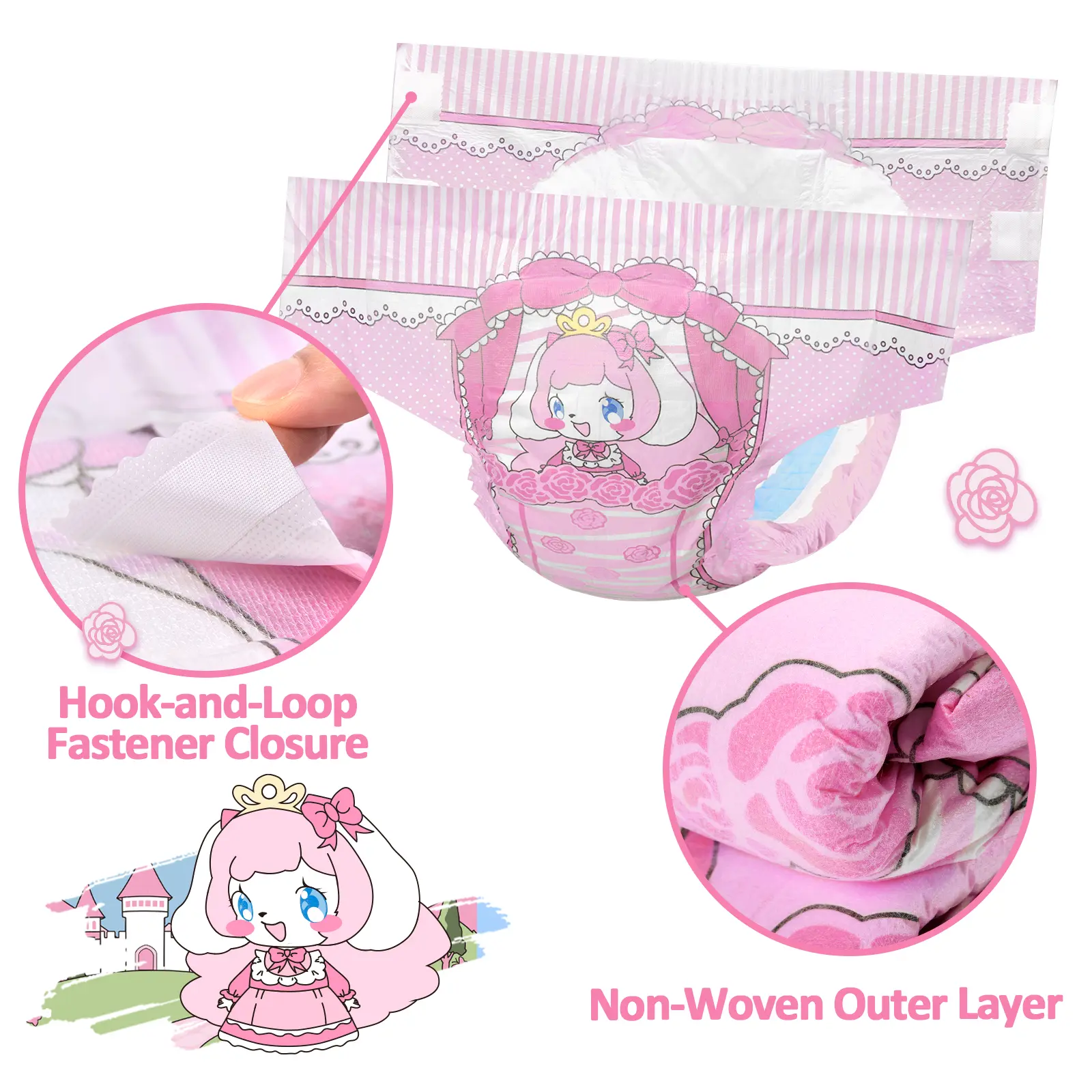 Introducing the Littleforbig Adjustable Hook-and-Loop Fastener Closure Adult Printed Cloth Back Diaper. This set includes 10 pieces, perfect for adults seeking a practical solution. The diapers feature a printed cloth back design, offering both comfort and style. Ideal for everyday use, these diapers ensure convenience and ease of care.