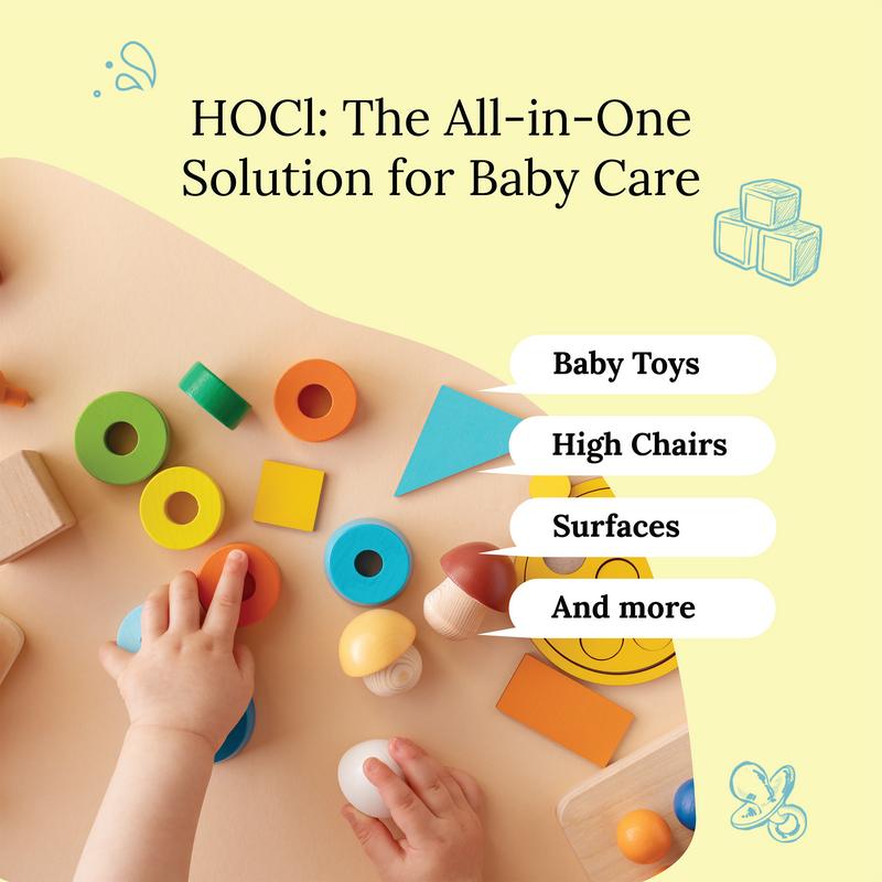 100% NATURAL: Our toy and surface cleanser is modeled on nature. It is formed using electrolyzed water, also known as hypochlorous acid. Hypochlorous is found naturally in our white blood cells to fight off disease and boost immunity, an essential part of our immune system. Through our manufacturing process, we have found a way to recreate and bottle nature's best kept secret.