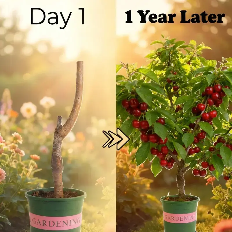 Live Cherry Tree Sapling - Dwarf Cherry Fruit Plant for Patio Pots, Balcony Garden & Backyard Orchard